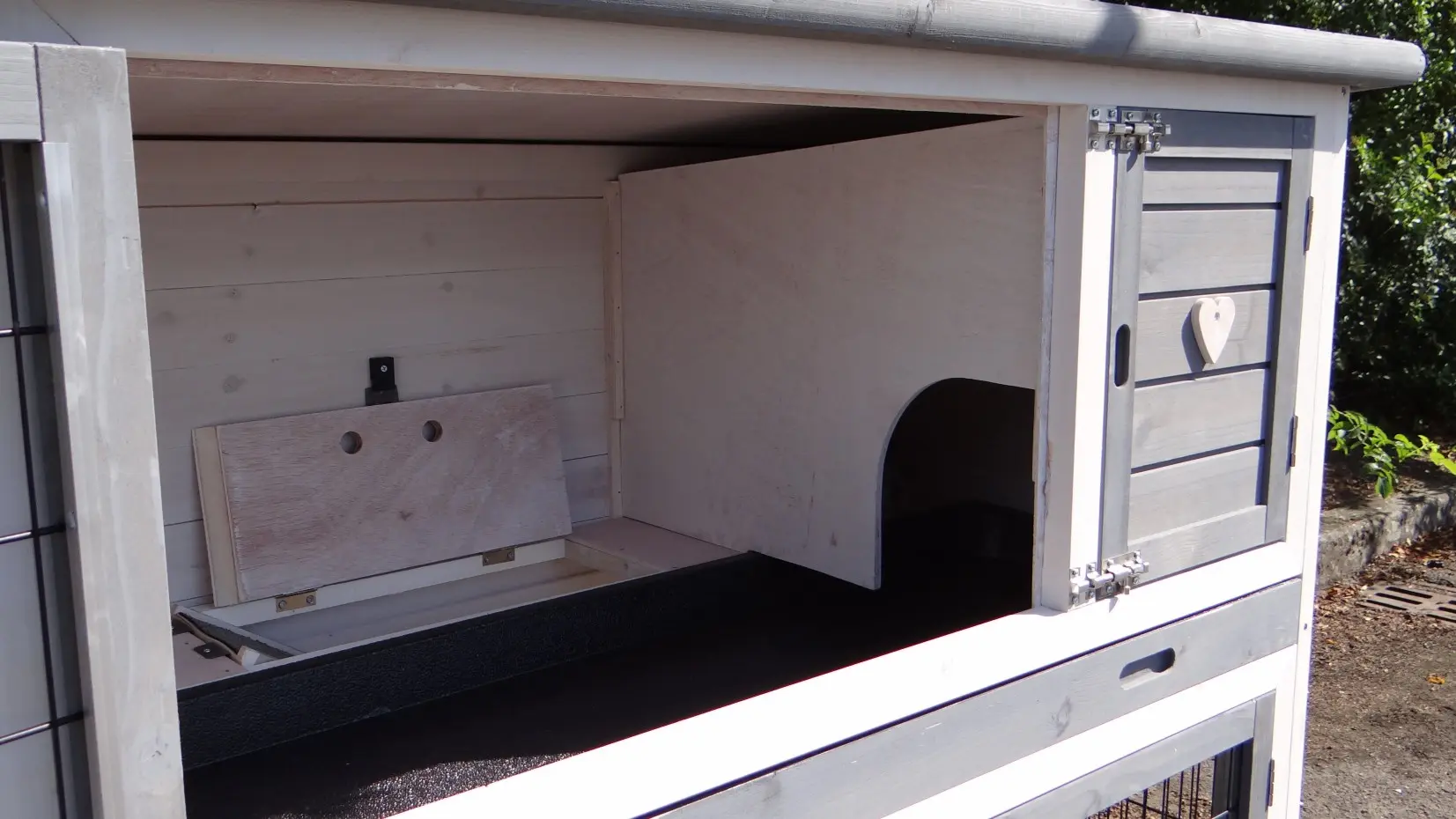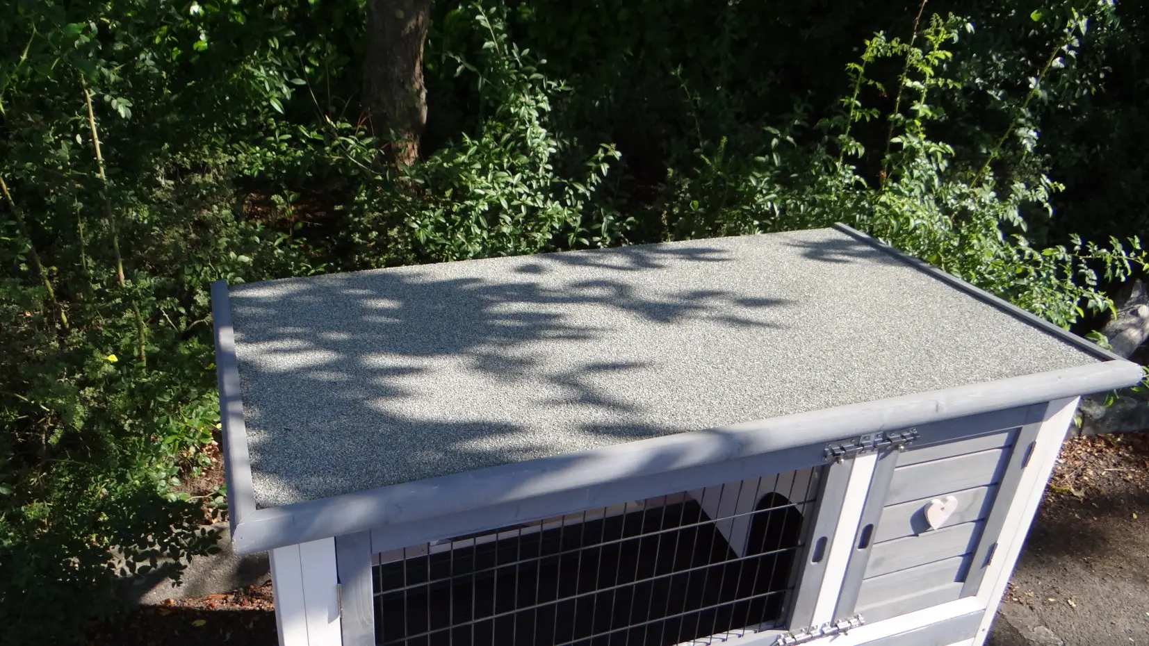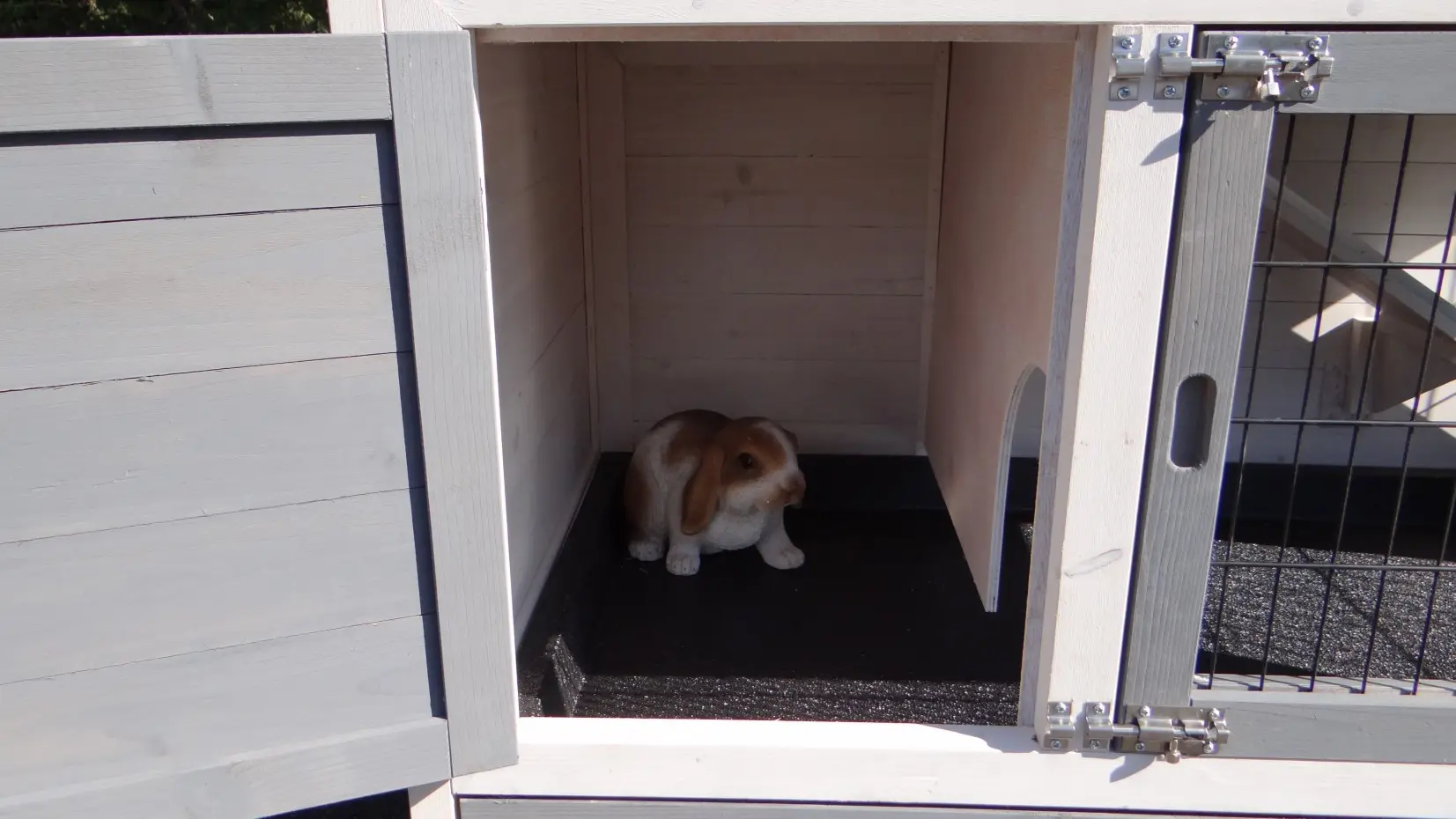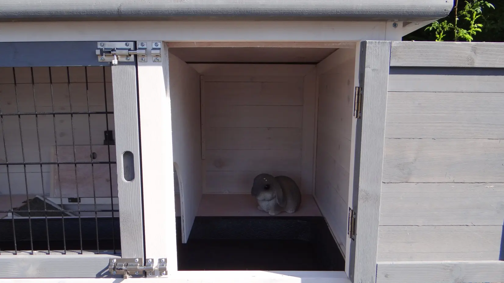 - Het hok heeft anti-knaagstrips op de meest gevoelige plekken, maar is niet volledig beschermd. Voor onbeschermde randen kunt u extra anti-knaagstrips mee bestellen.