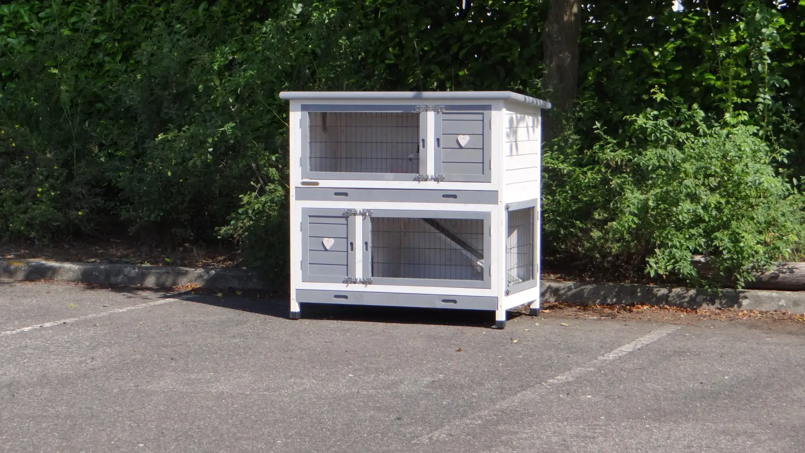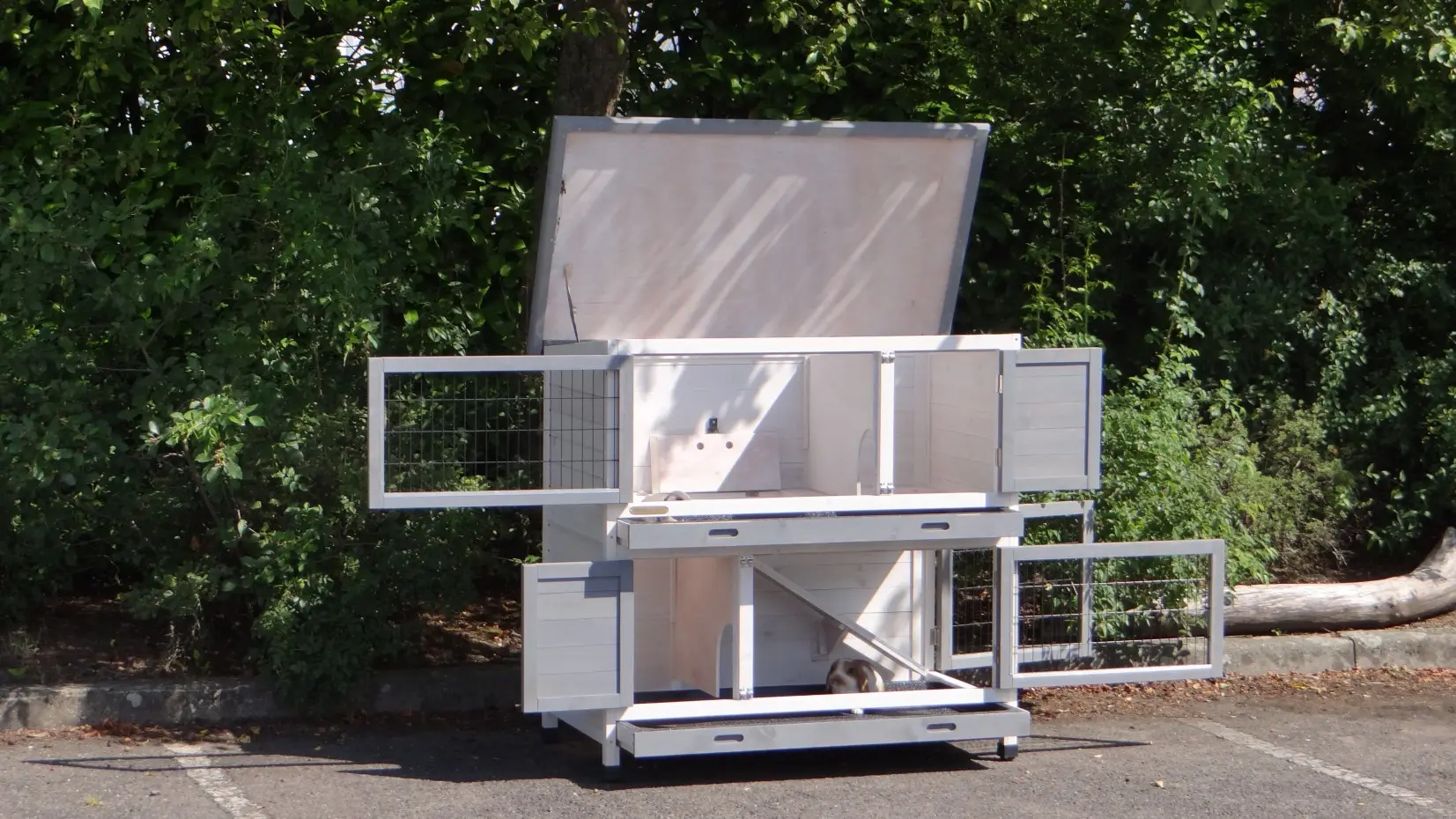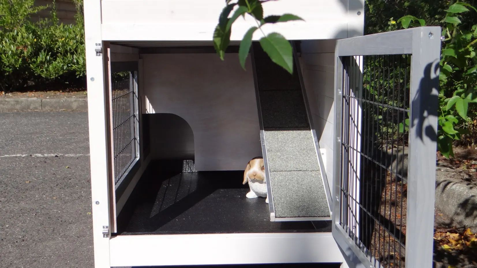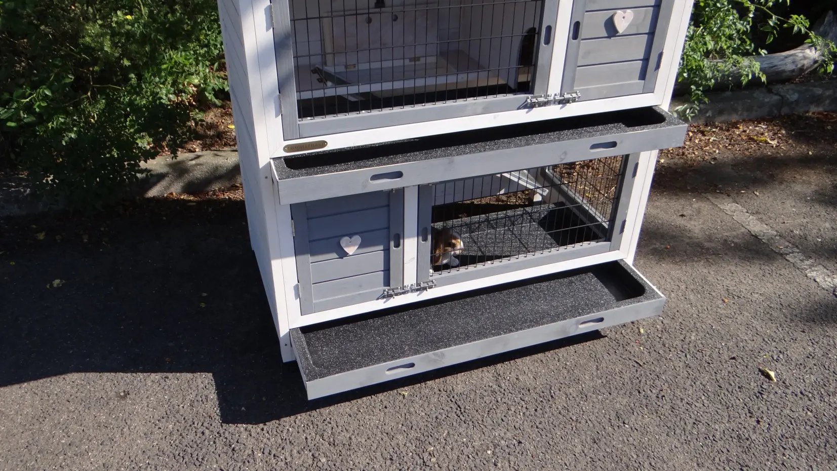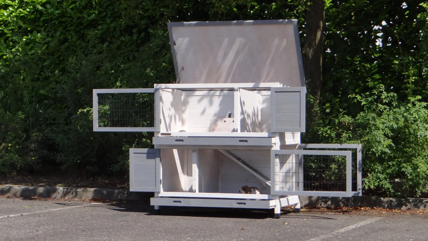 - Het hok heeft anti-knaagstrips op de meest gevoelige plekken, maar is niet volledig beschermd. Voor onbeschermde randen kunt u extra anti-knaagstrips mee bestellen.