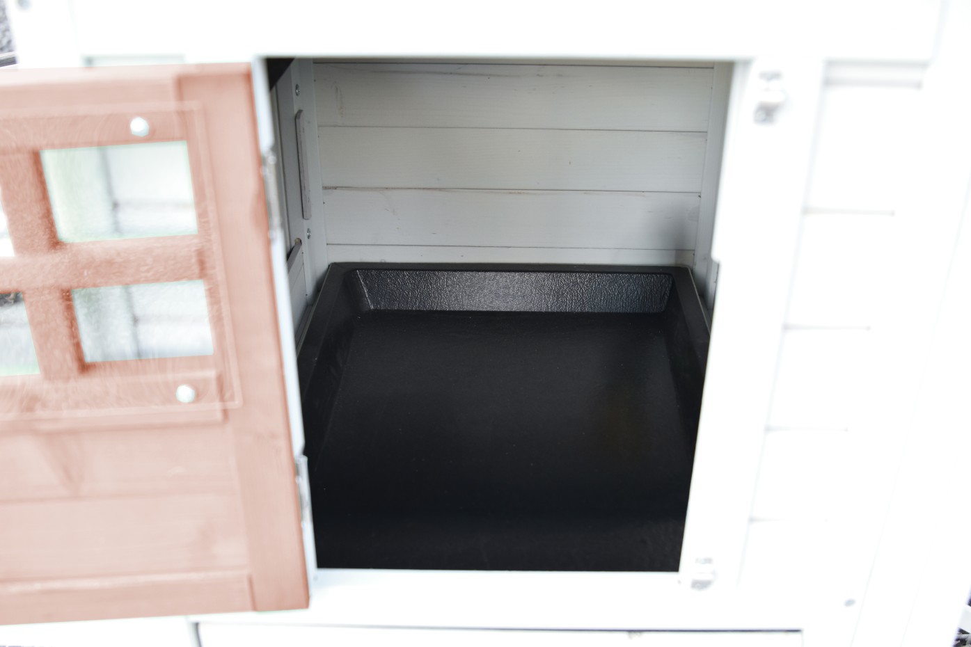 - Wanneer het hok niet op een beschutte plaats staat, dan adviseren wij om het te verankeren