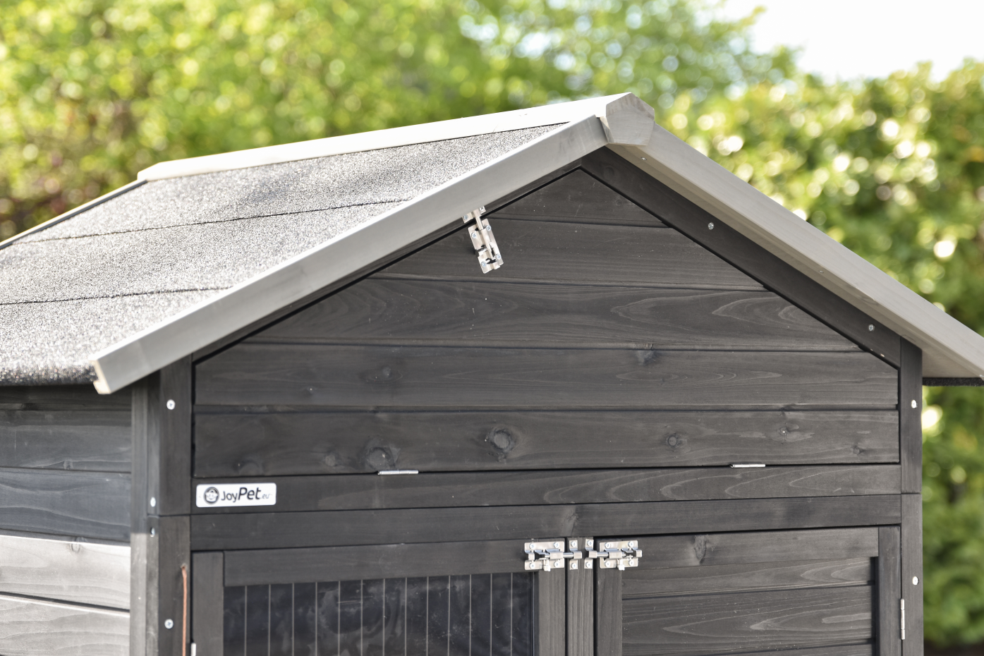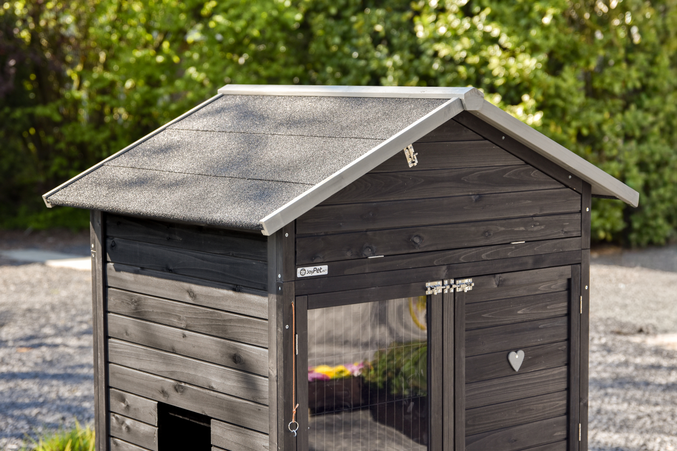 - Het hok heeft een dak met dakleer