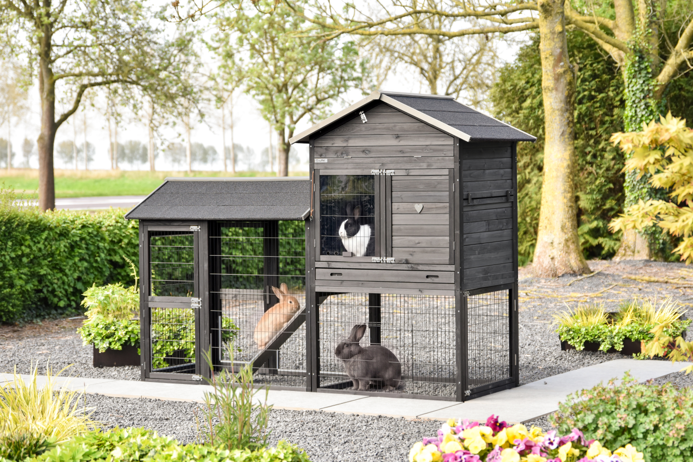 Konijnenhok Prestige Large met ren Black