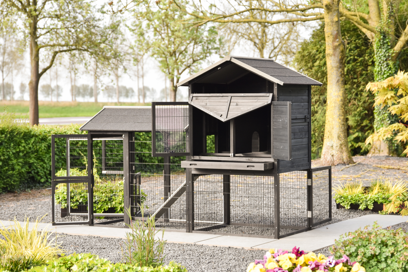 - Het hok is eenvoudig uit te breiden met aanbouwren(nen)