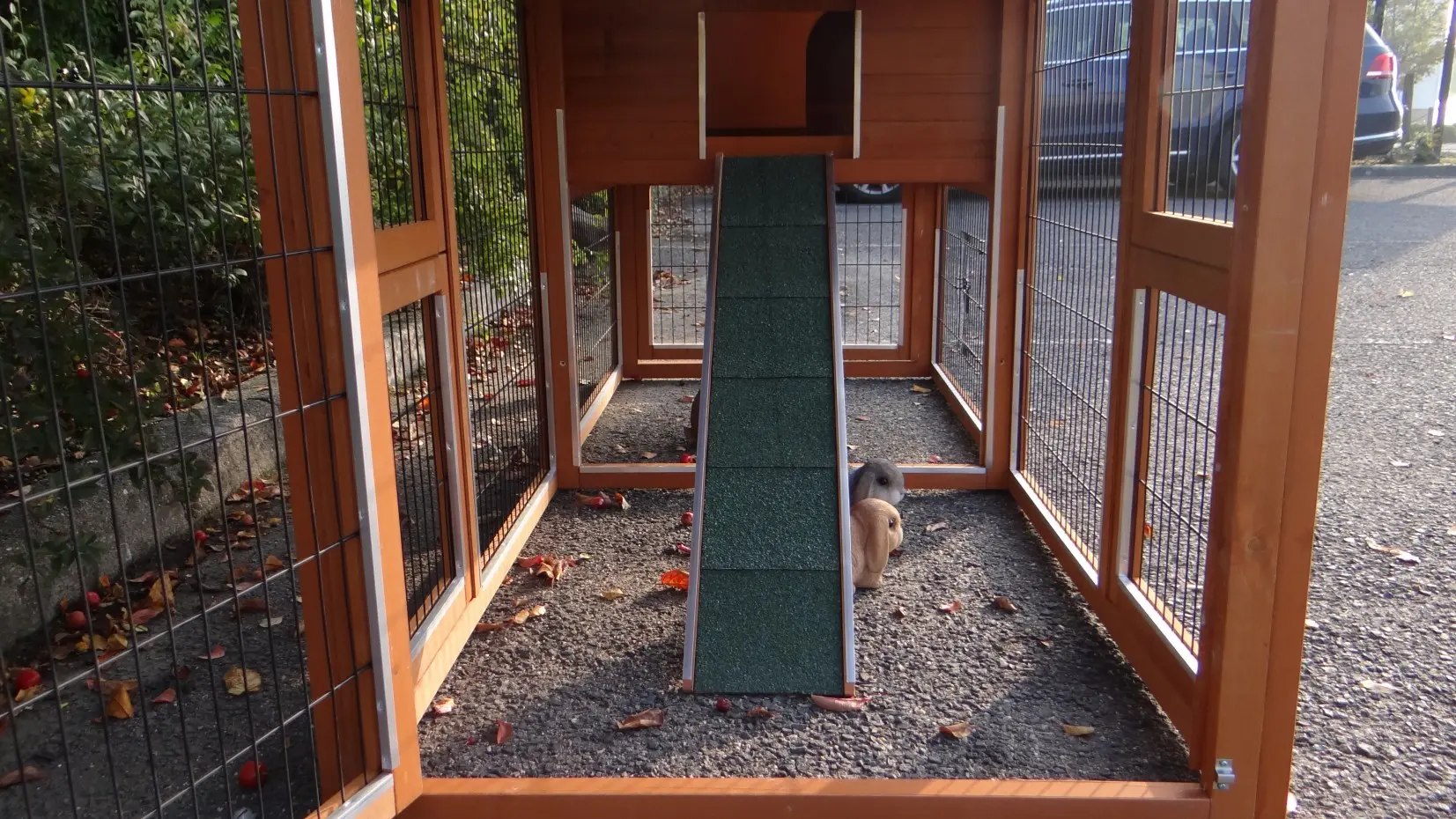 - Het hok heeft anti-knaagstrips op de meest gevoelige plekken, maar is niet volledig beschermd. Voor onbeschermde randen kunt u extra anti-knaagstrips mee bestellen.