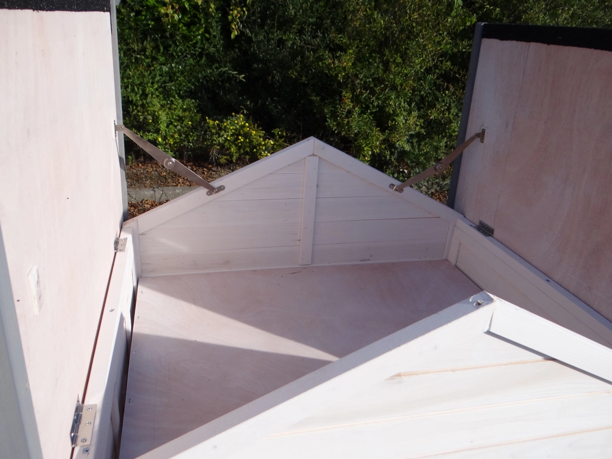 - Het hok heeft een dak met dakleer