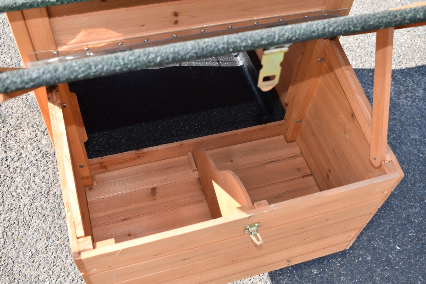 • Het hok is licht gebeitst om het op kleur te brengen; wij adviseren om nogmaals te beitsen voor een optimaal resultaat