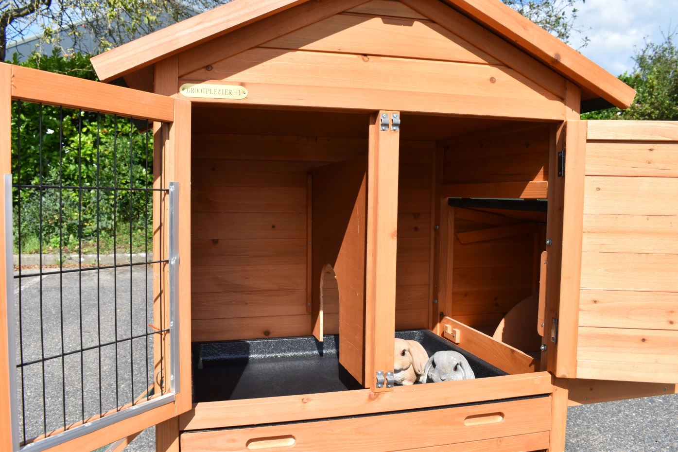 • De deuren van dit dierenhok zijn voorzien van dubbele sloten