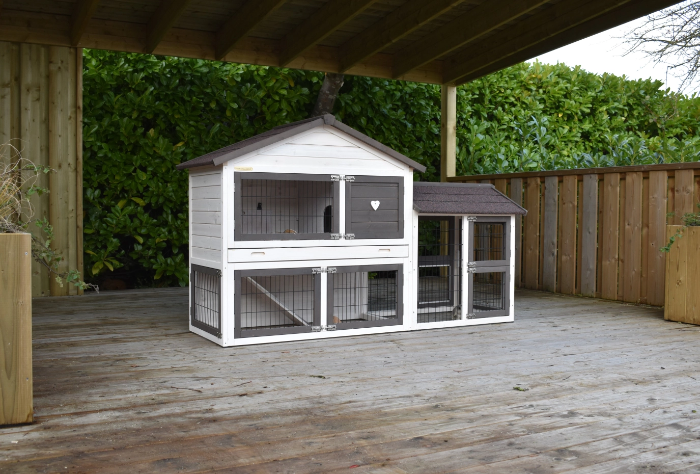 - Dit dierenhok is gemaakt van mooi dennenhout