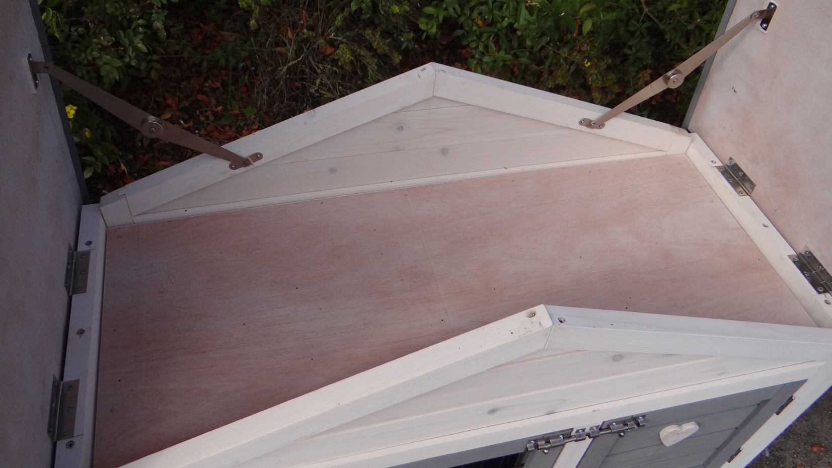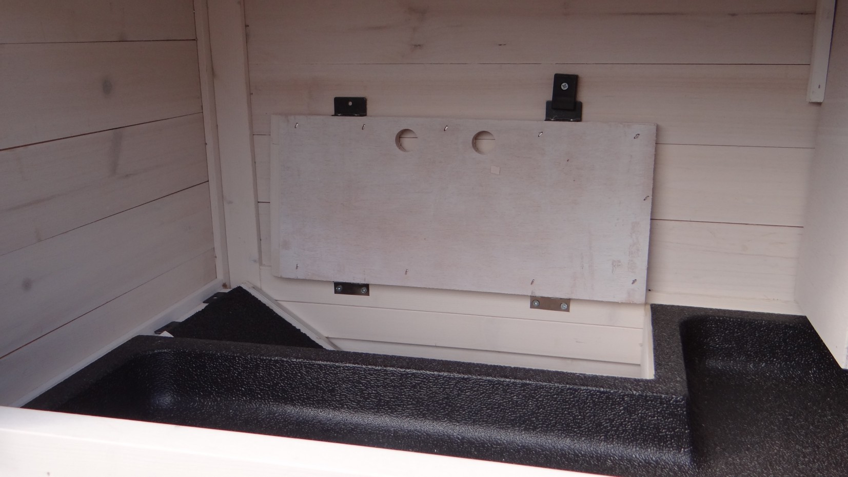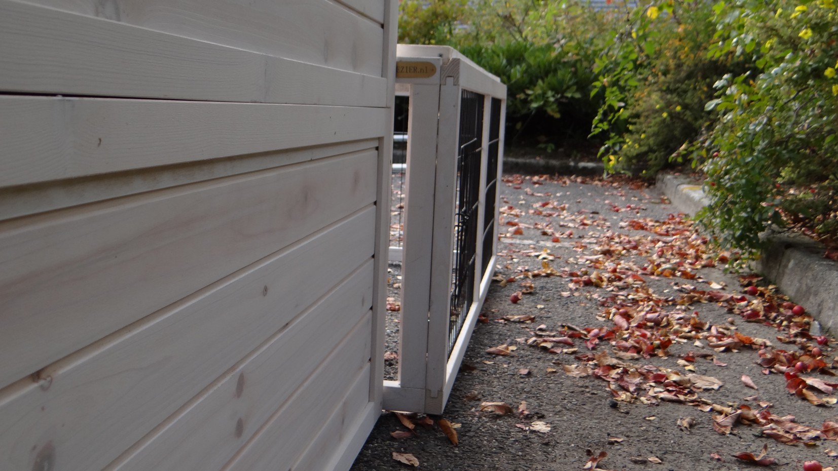 - Het hok heeft anti-knaagstrips op de meest gevoelige plekken, maar is niet volledig beschermd. Voor onbeschermde randen kunt u extra anti-knaagstrips mee bestellen.