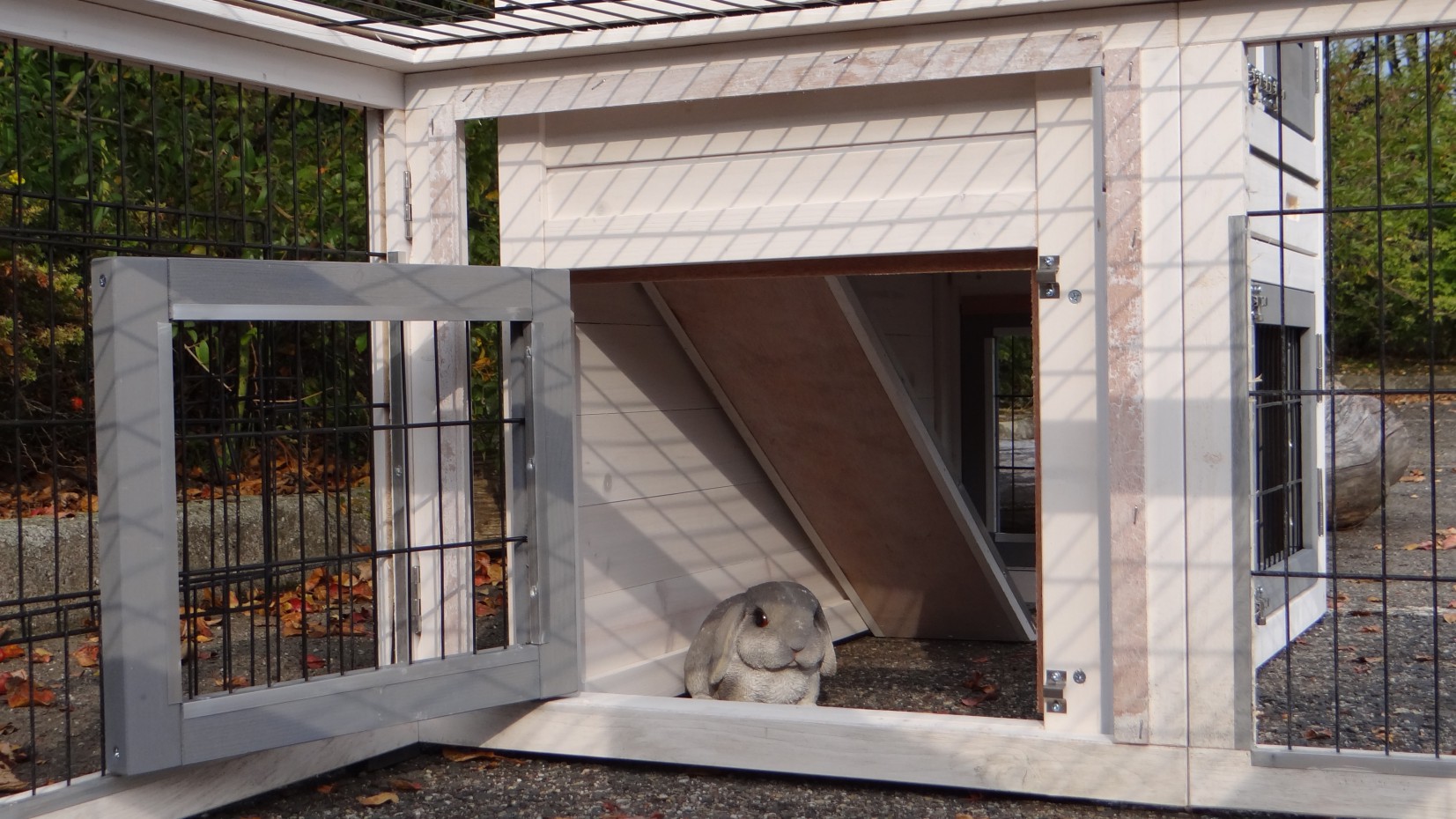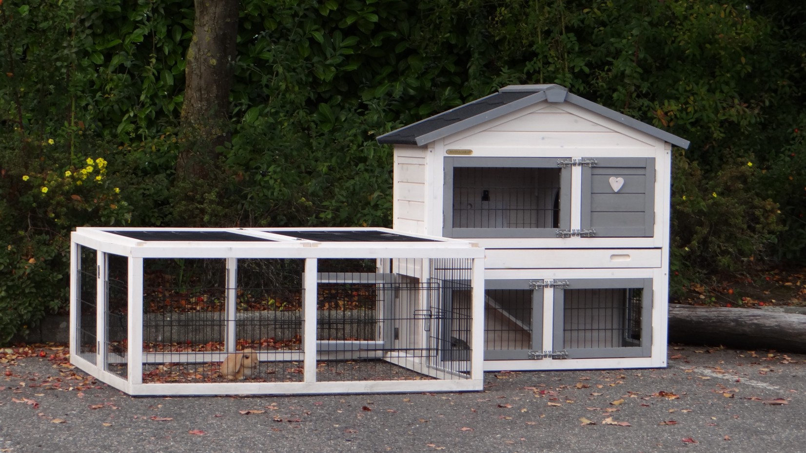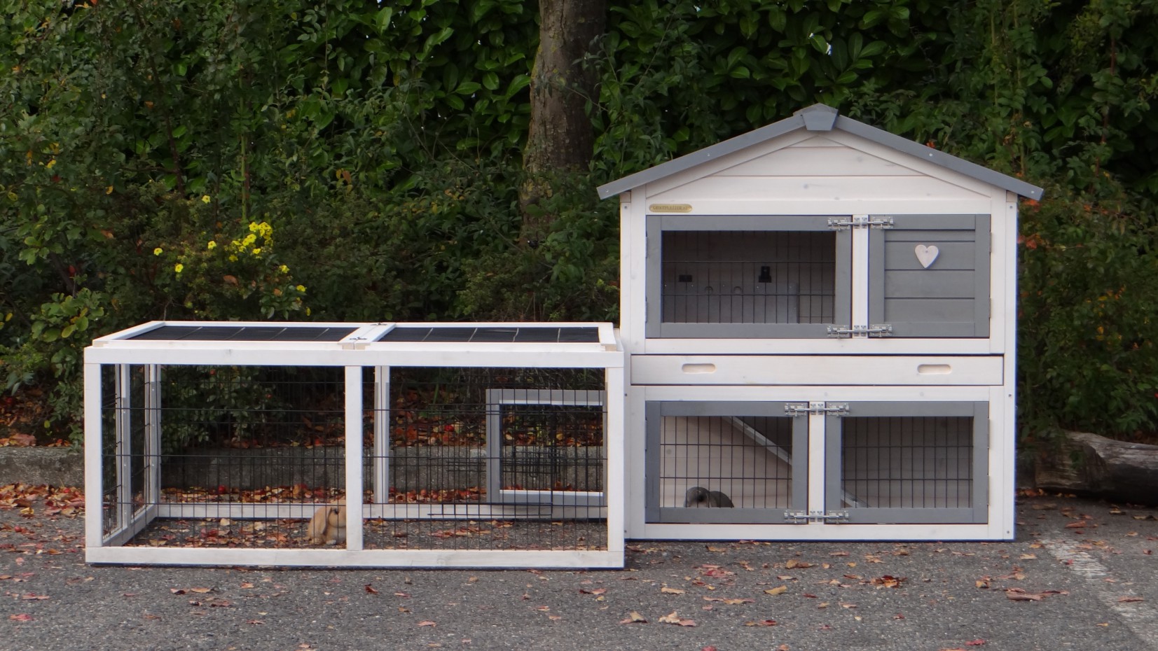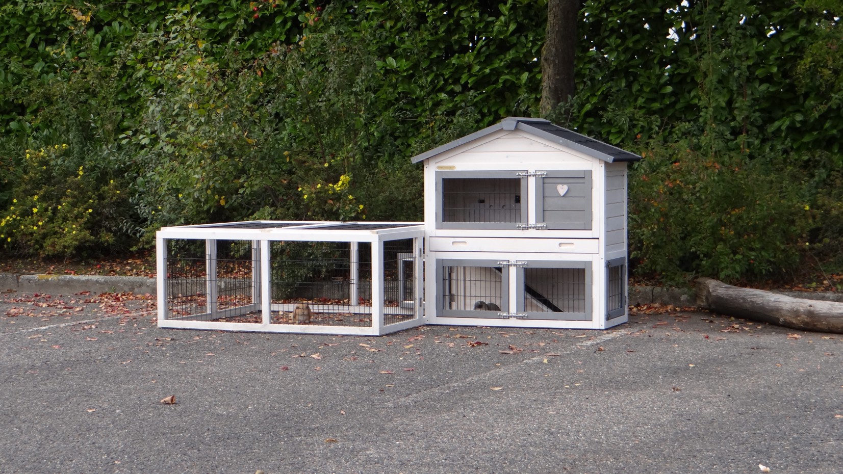 - Het hok heeft anti-knaagstrips op de meest gevoelige plekken, maar is niet volledig beschermd. Voor onbeschermde randen kunt u extra anti-knaagstrips mee bestellen.
