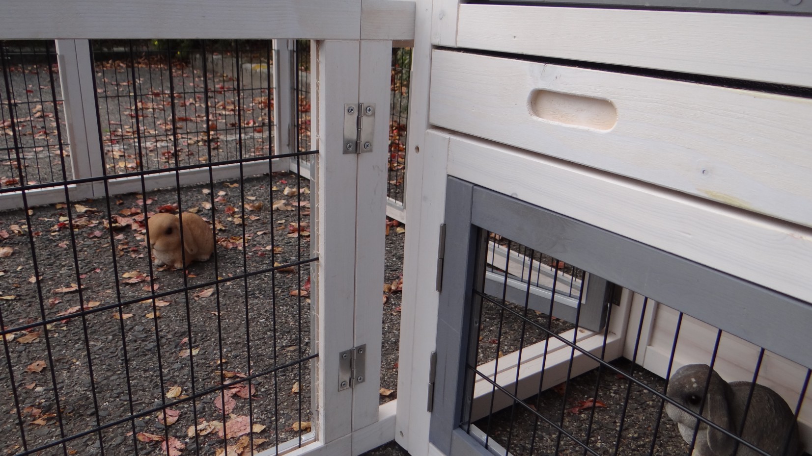 - Om hok en ren te combineren moet er een traliepaneel en/of deur verwijderd worden