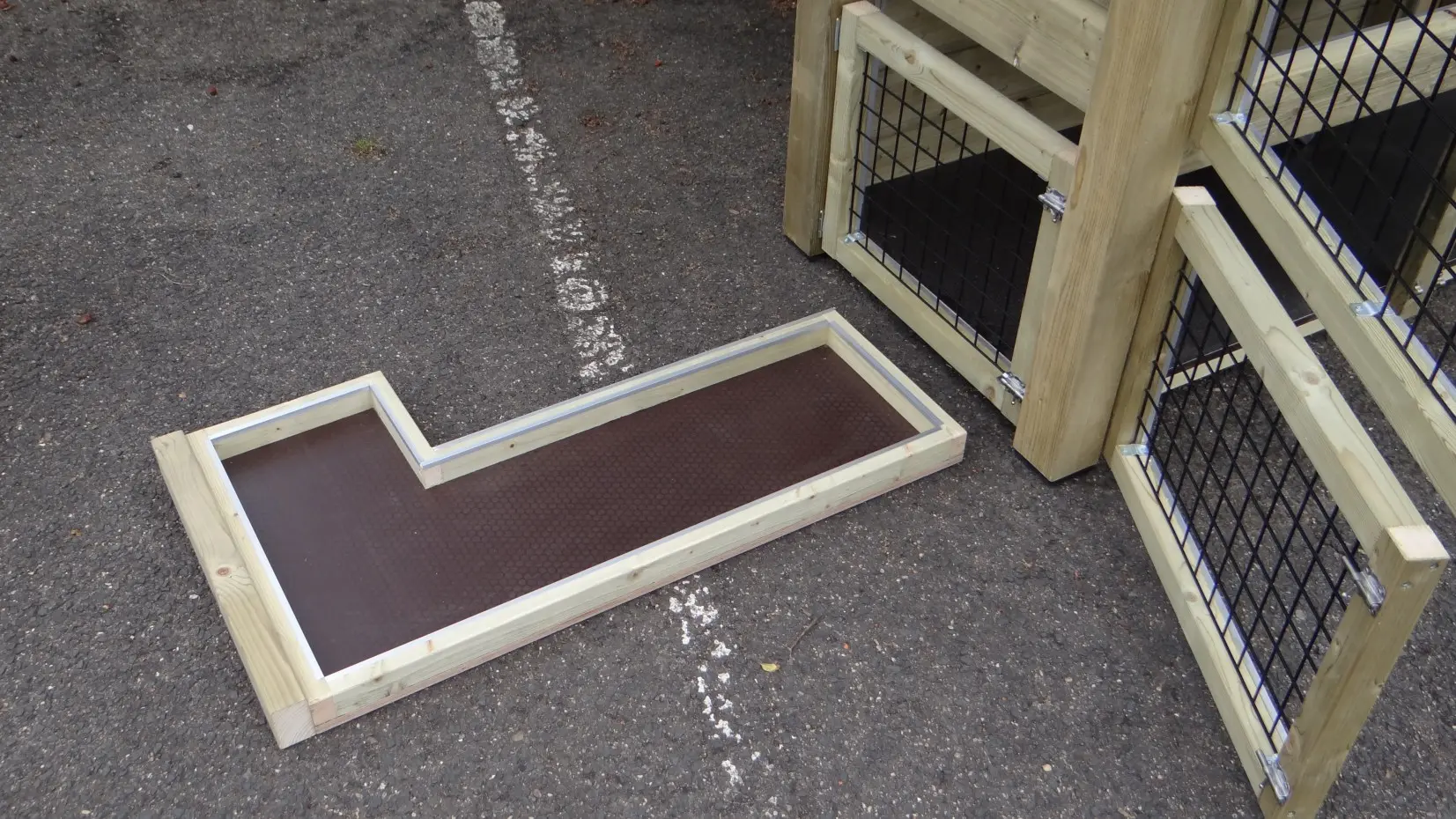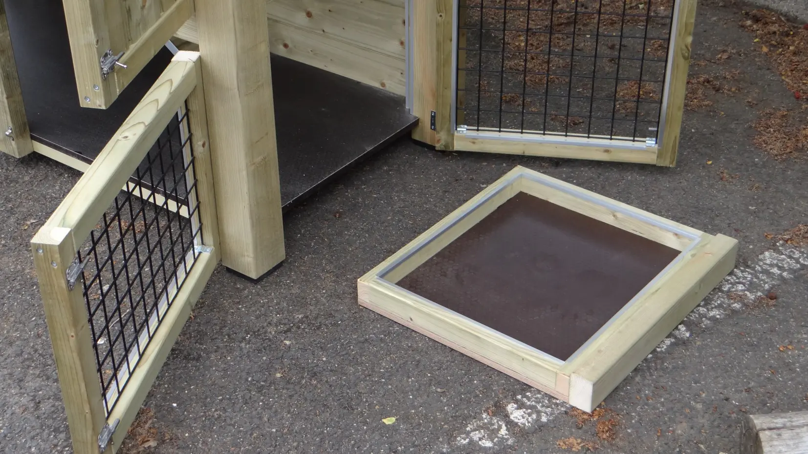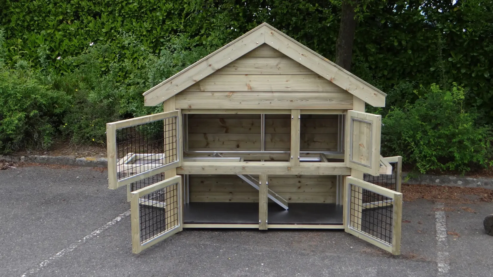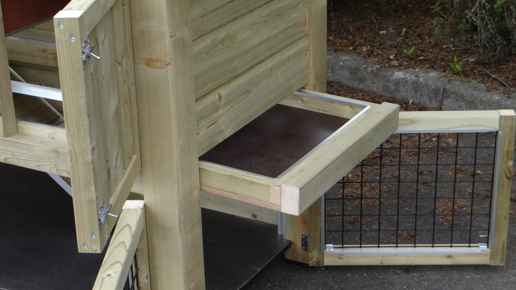 - Let op! Dit dierenverblijf wordt compleet gemonteerd geleverd. Bij levering moet de doorgang dus minimaal de diepte van het hok zijn!