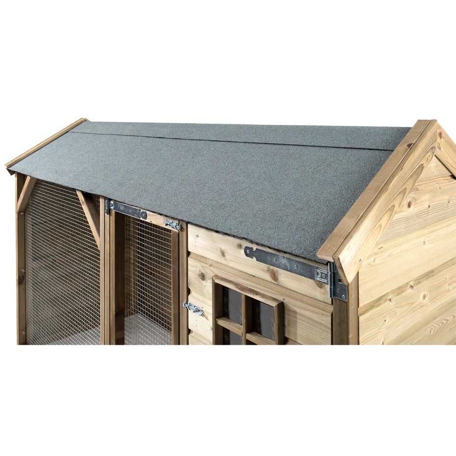 - Dierenverblijf van geïmpregneerd grenen hout, dat maakt het hok onderhoudsvrij en zorgt voor een lange levensduur