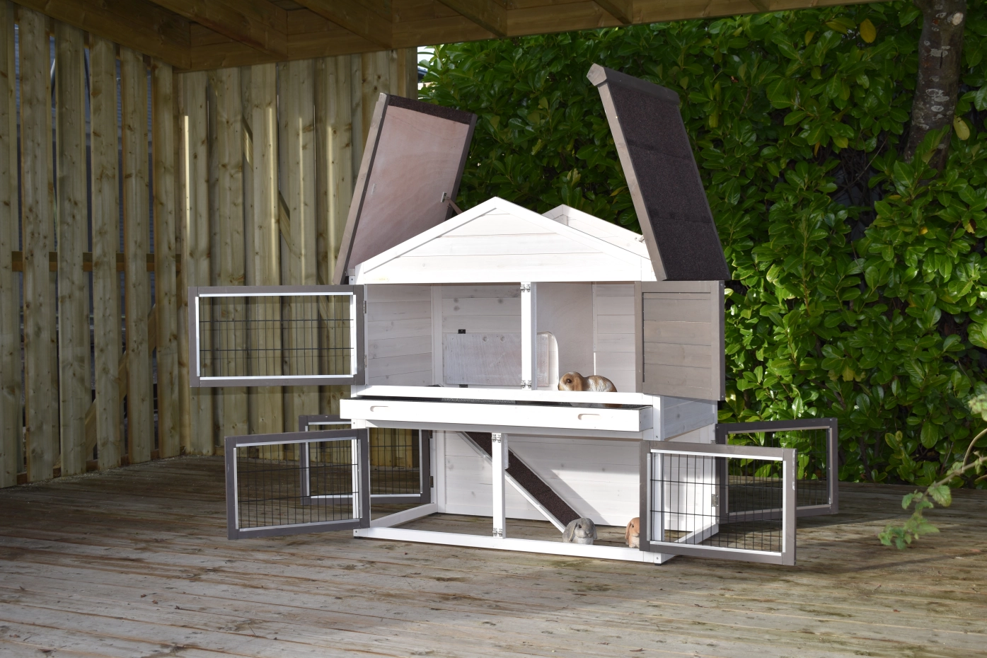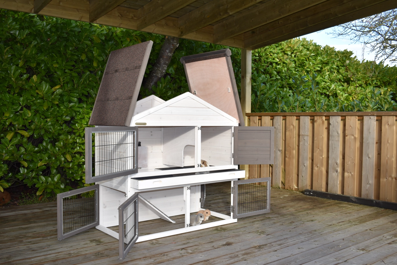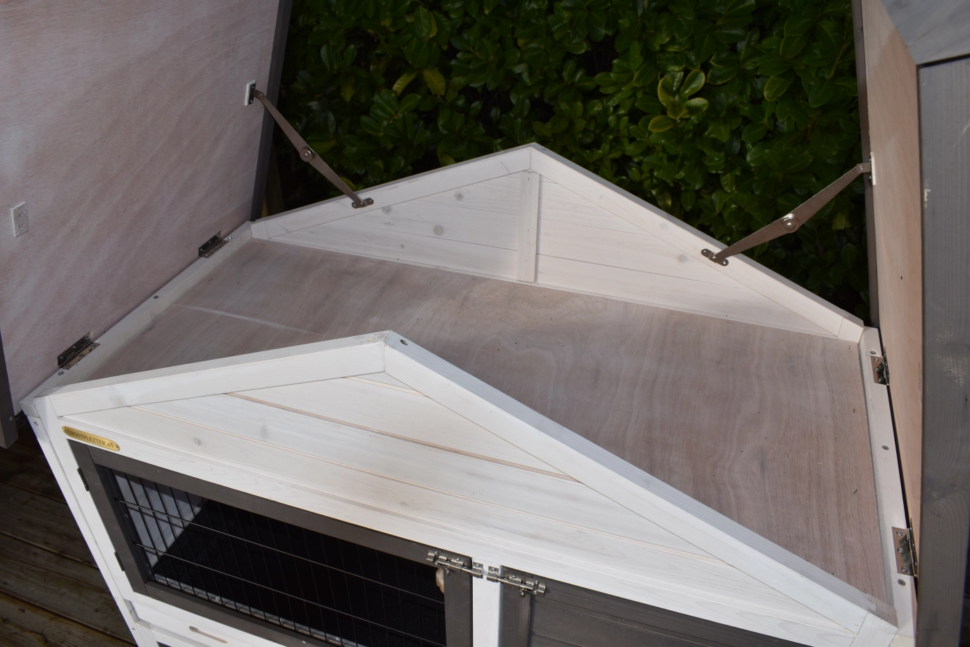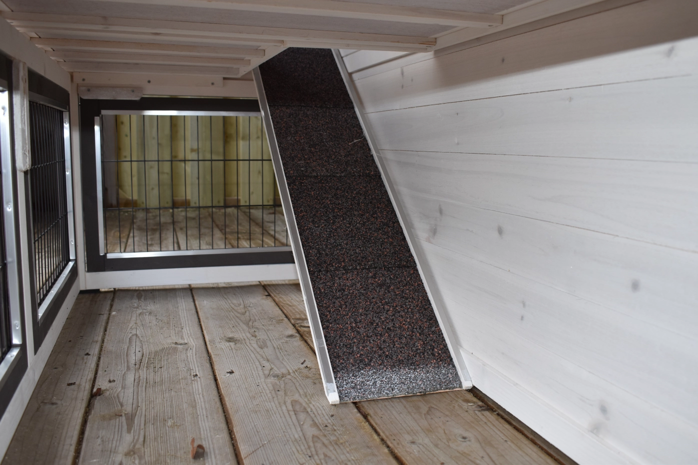 - Het hok heeft anti-knaagstrips op de meest gevoelige plekken, maar is niet volledig beschermd. Voor onbeschermde randen kunt u extra anti-knaagstrips mee bestellen.