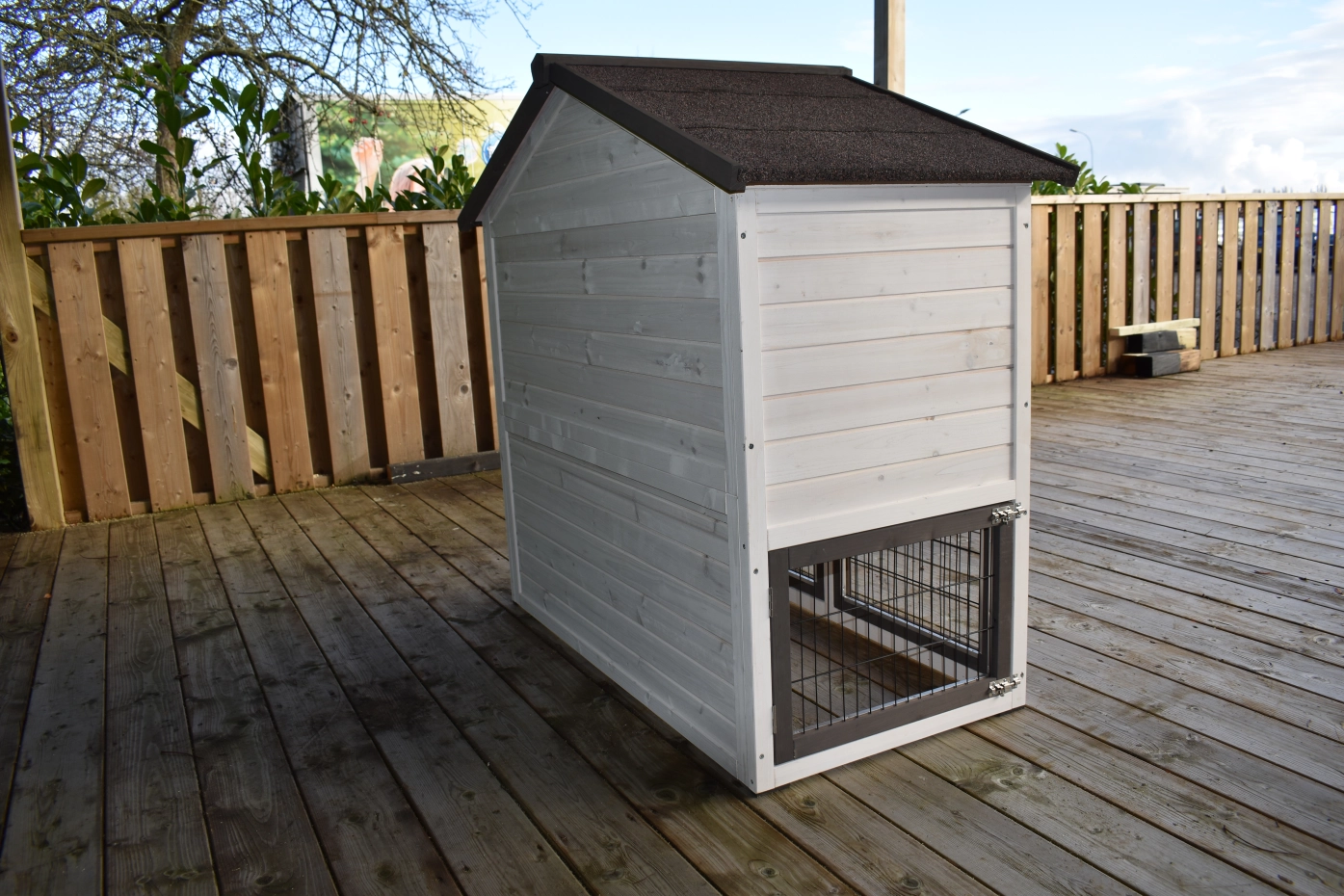 - Dit dierenhok is gemaakt van mooi dennenhout