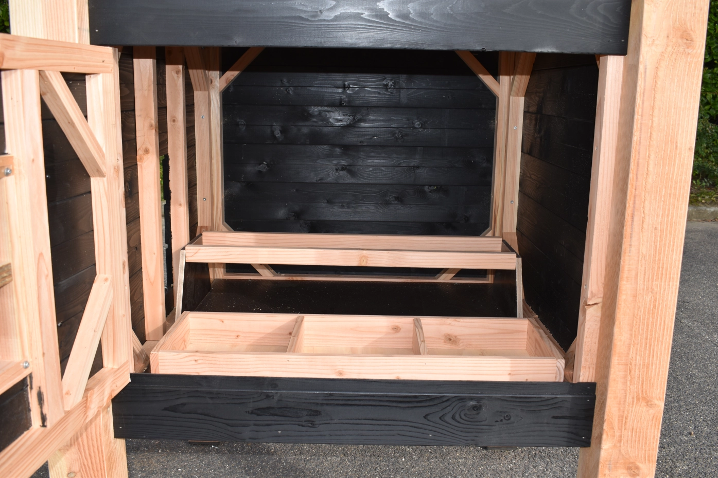 - Gemaakt van Douglashout, zwart geïmpregneerd vurenhout en betonmultiplex