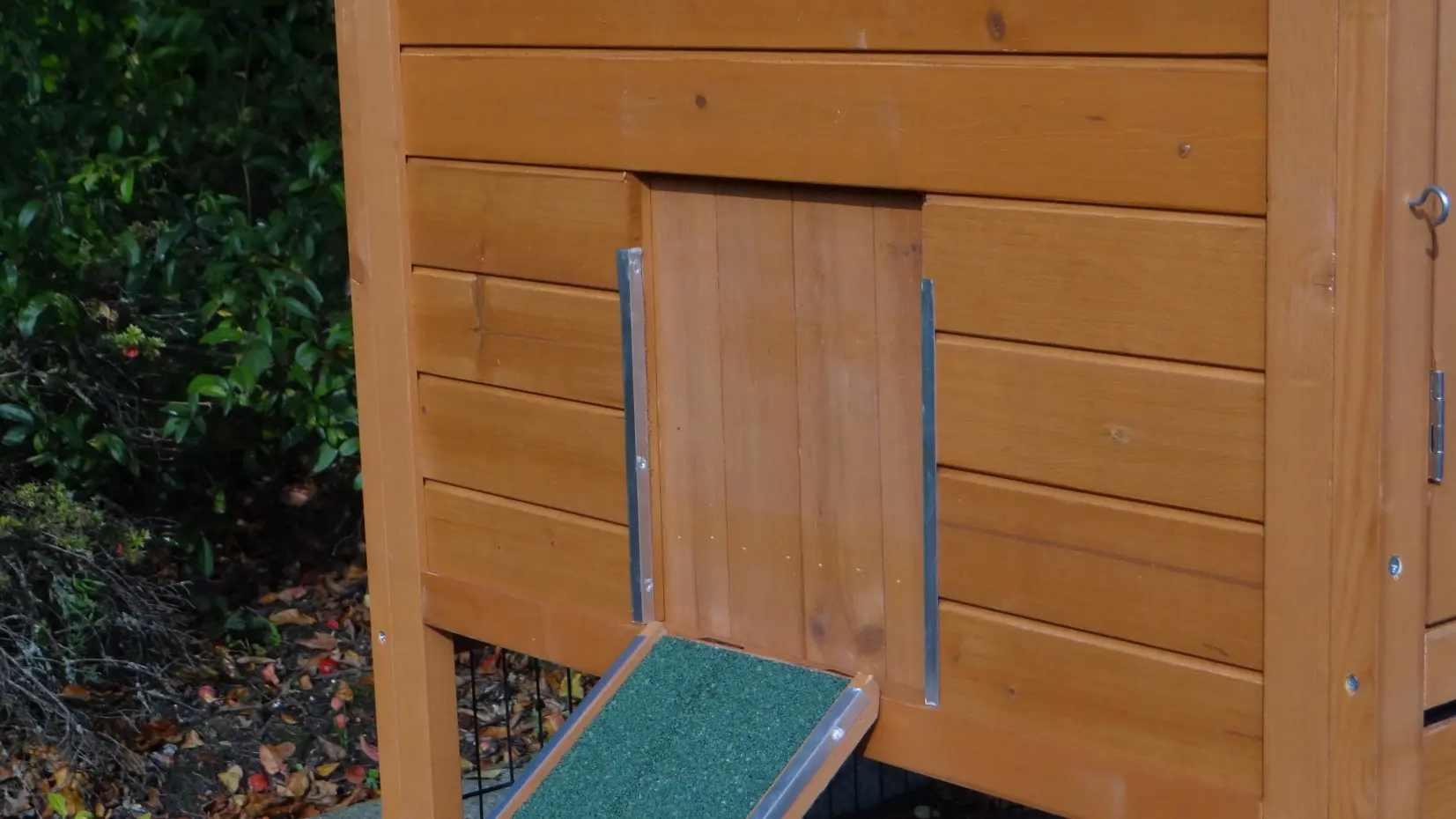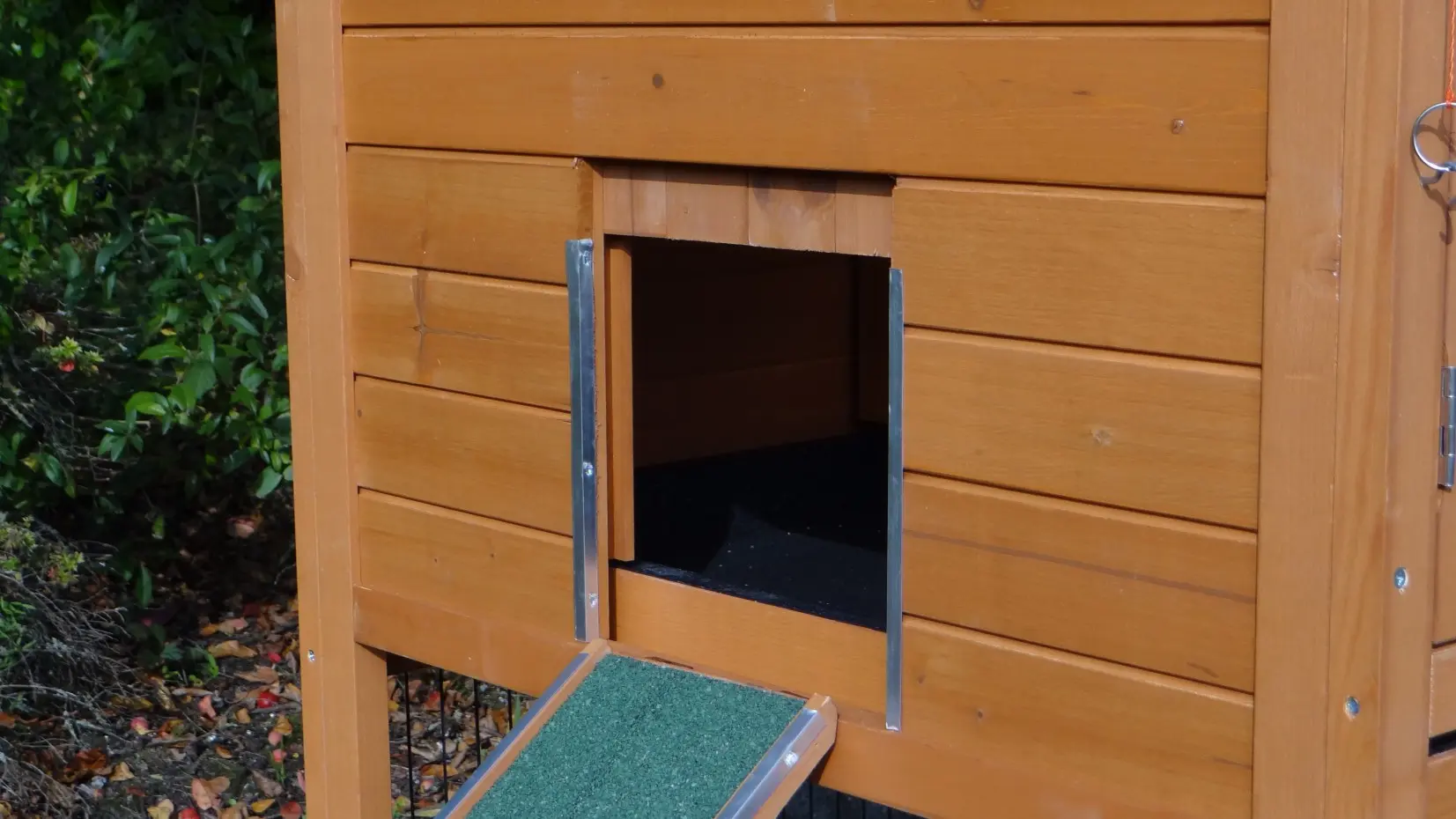 • Wanneer het hok niet op een beschutte plaats staat, dan adviseren wij om het te verankeren