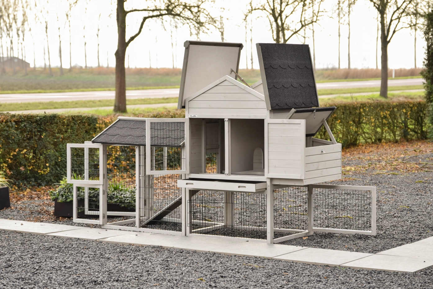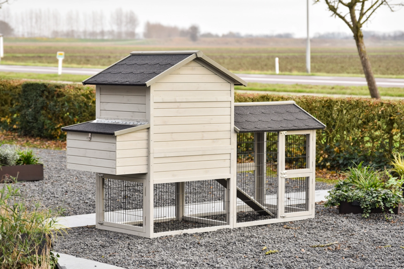 • Het hok heeft anti-knaagstrips op de meest gevoelige plekken, maar is niet volledig beschermd. Voor onbeschermde randen kunt u extra anti-knaagstrips mee bestellen.