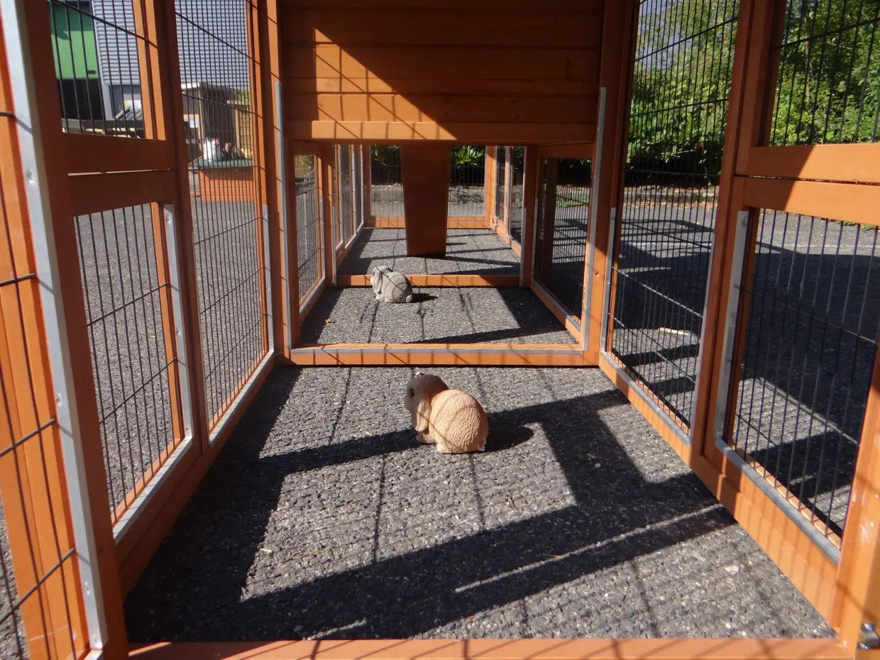 - Als het dierenverblijf binnenshuis gebruikt wordt adviseren wij de vloer af te dekken om schade, door bijv. urine, te voorkomen