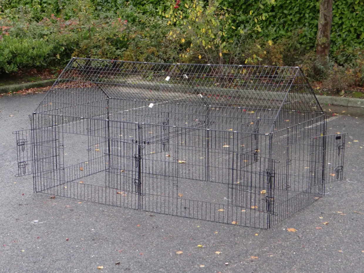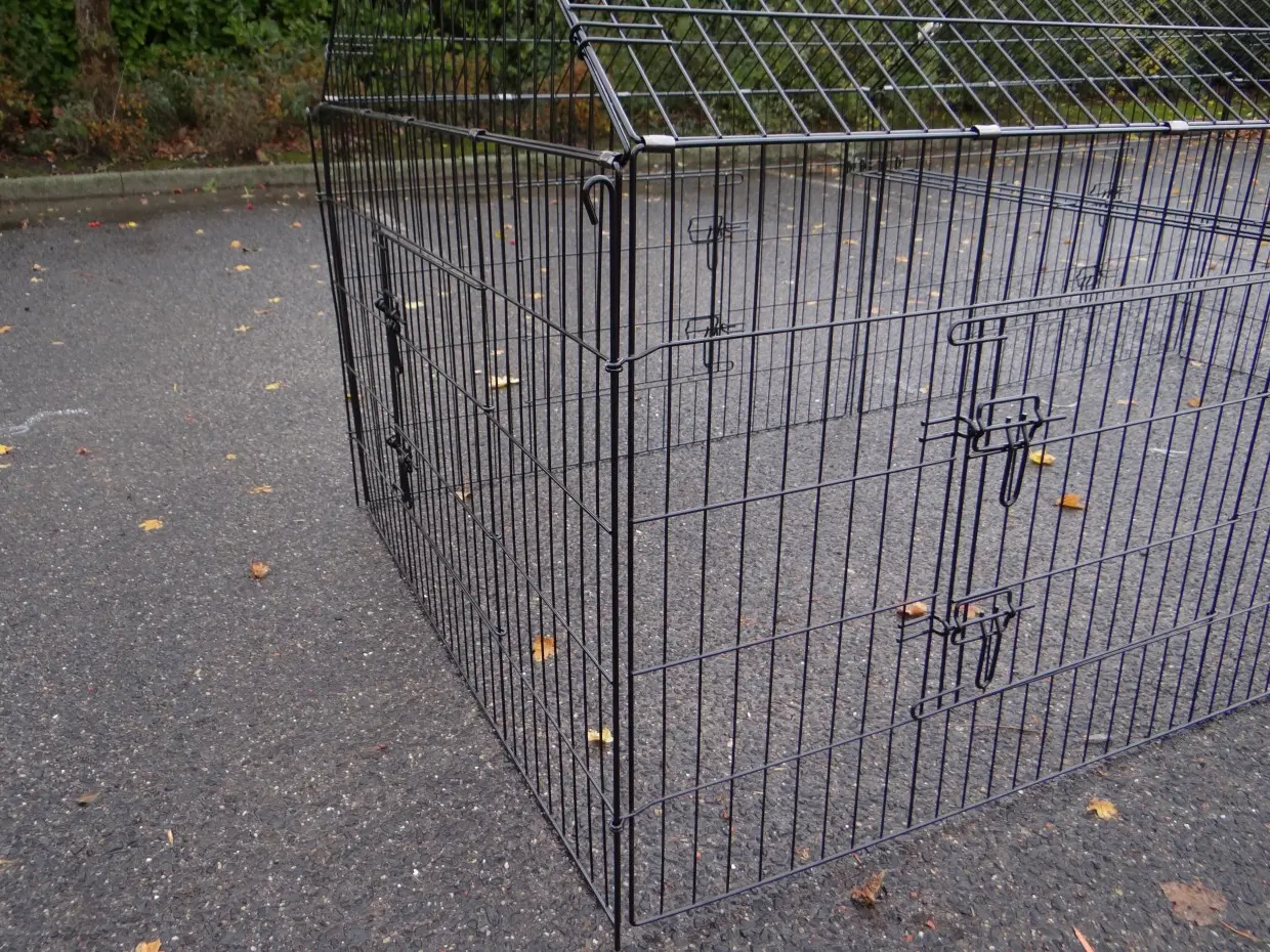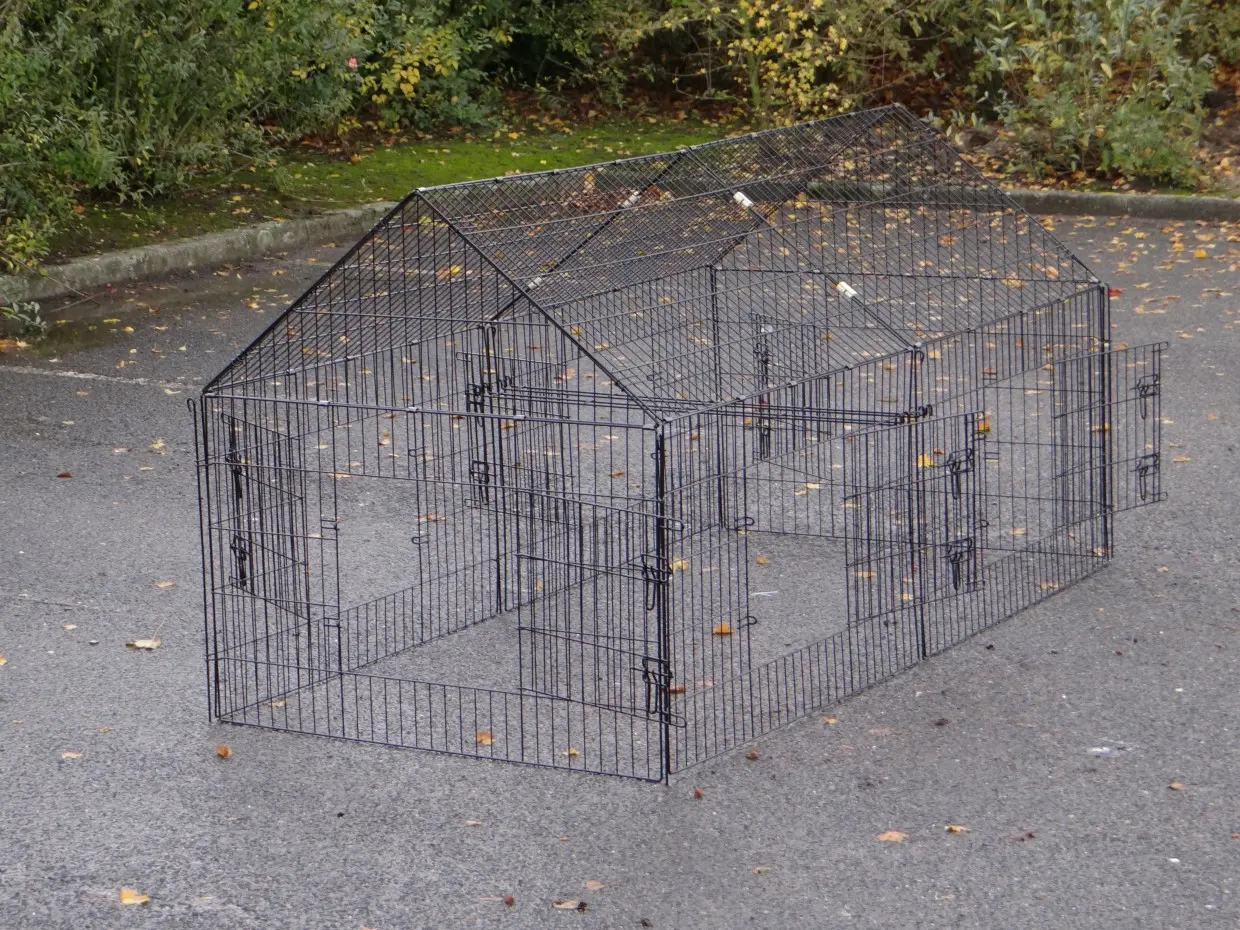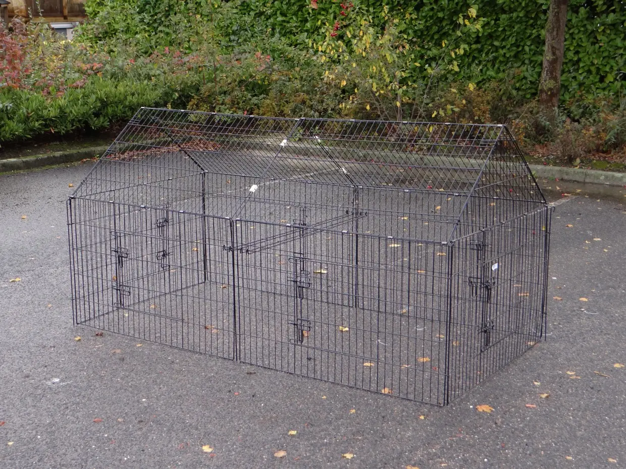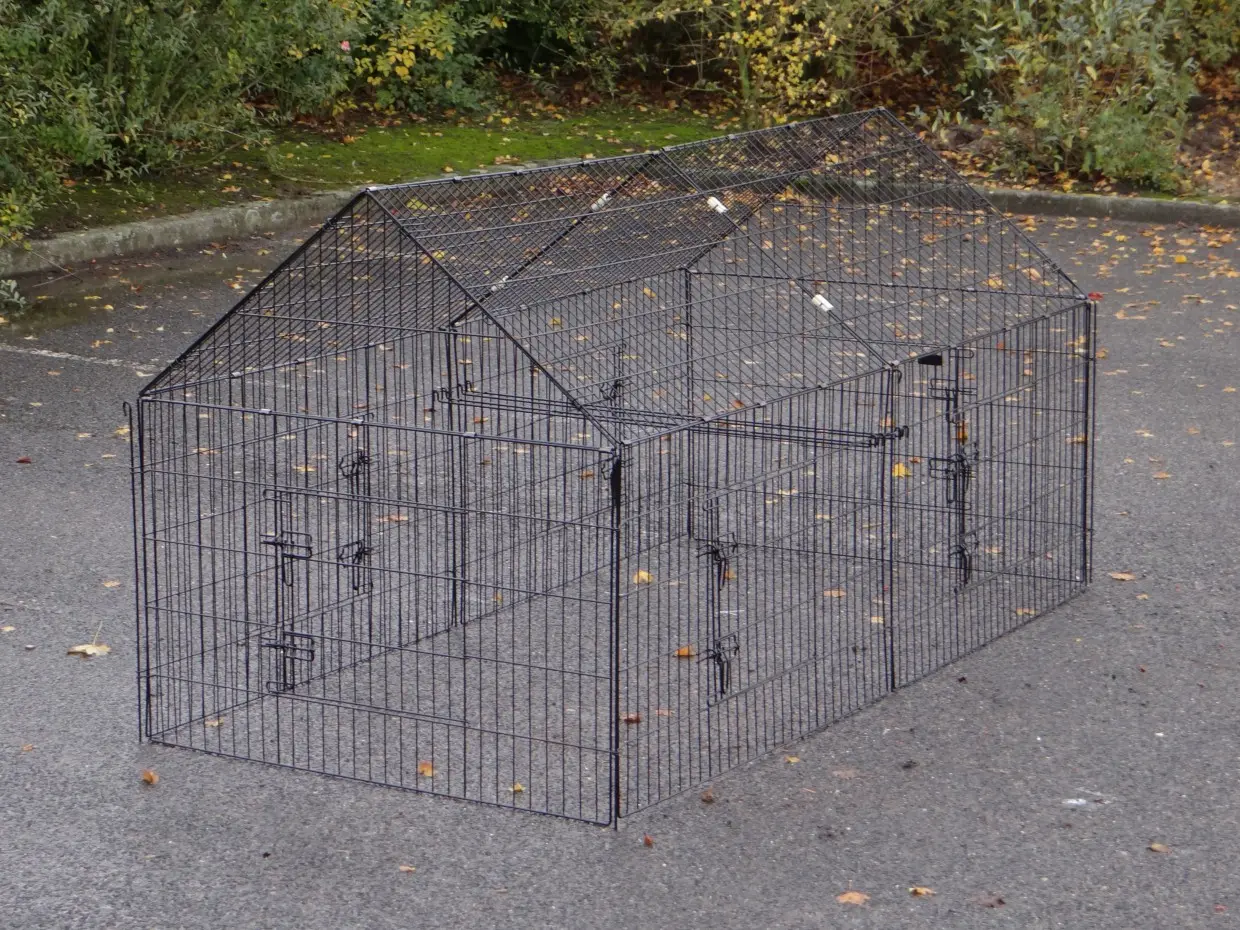 Dierenren Chanel is een robuuste loopren van gepoedercoat staal. Geschikt voor konijnen, kippen, katten, puppy's en kleine honden. Met 6 grote deuren en uitbreidingsmogelijkheden. Perfect te combineren met andere dierenhokken. De zijwand (het steile gedeelte) is ongeveer 69 cm hoog.