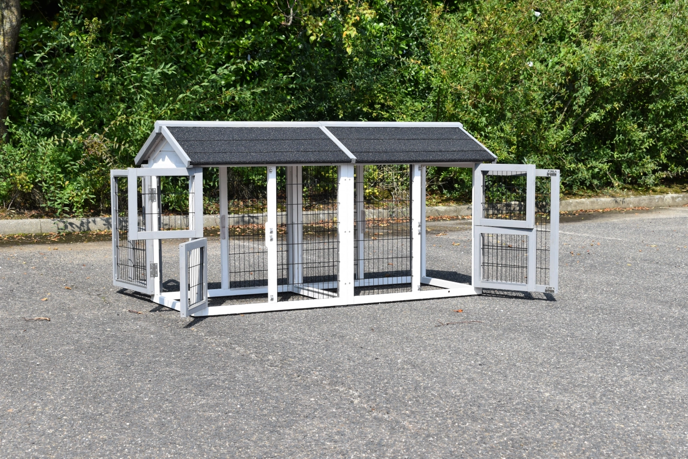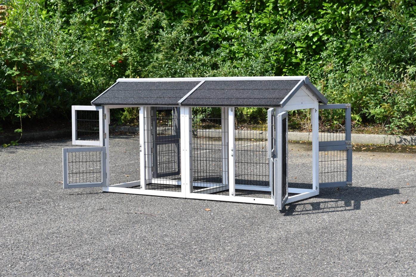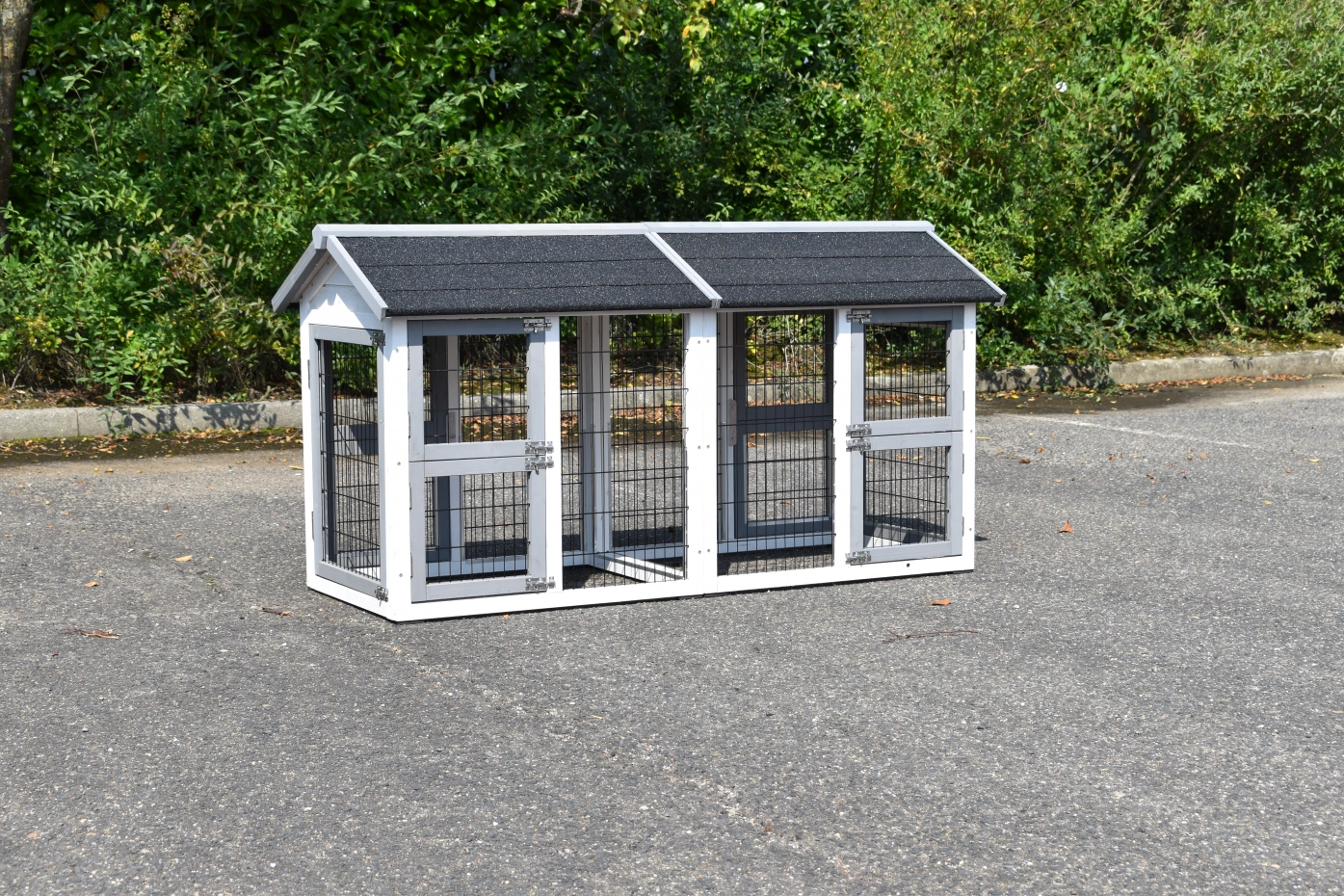 De dubbele Aanbouwren Space Small is ontworpen als vrijstaande ren. Dat betekent dat u deze ren op elke plaats neer kunt zetten. Onder de ren zitten een aantal pootjes, waar de ren ook op rust. Het dak is afgewerkt met dakleer, dit zorgt meteen voor wat extra beschutting. Deze aanbouwren is te gebruiken voor verschillende diersoorten zoals kippen, konijnen of katten.