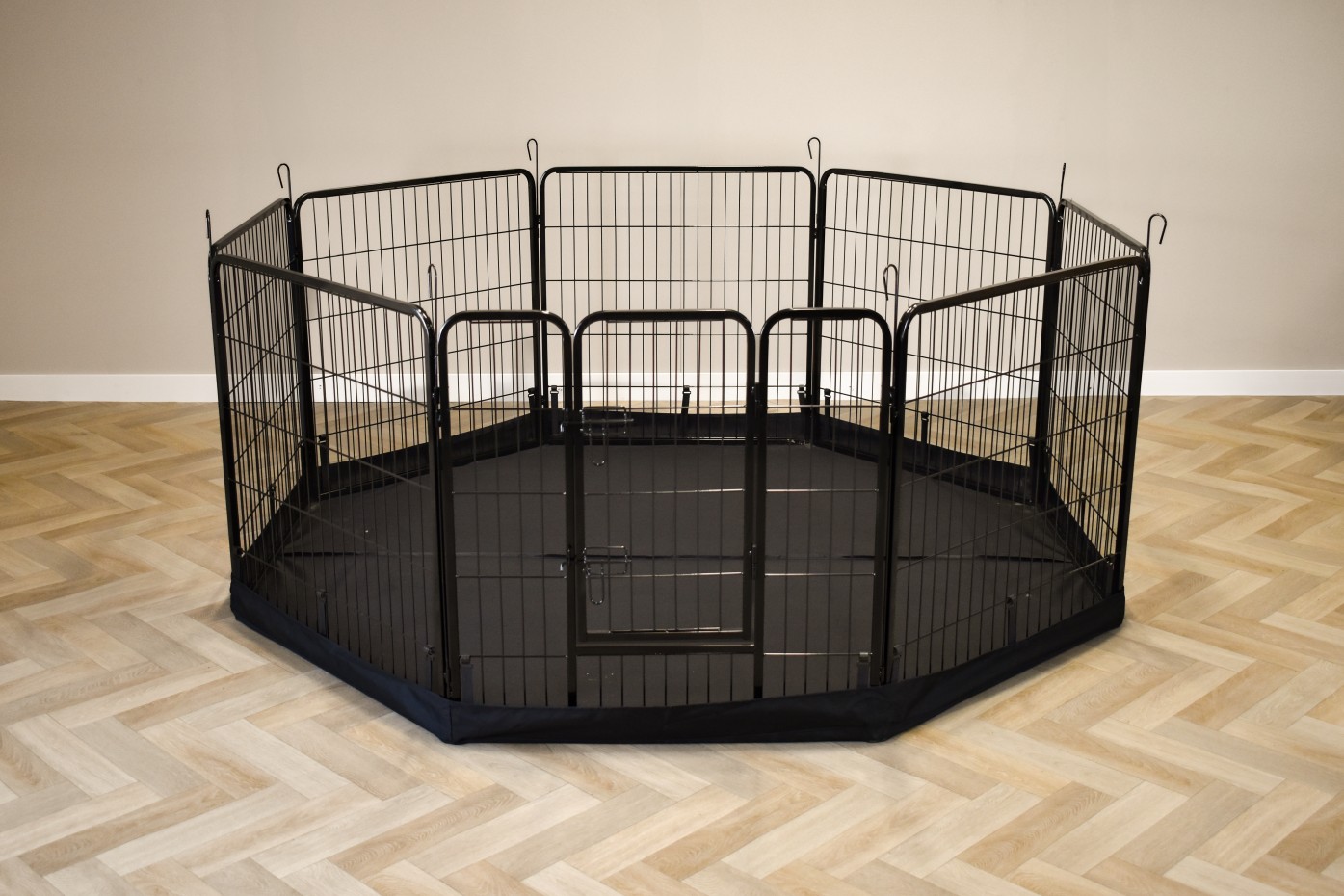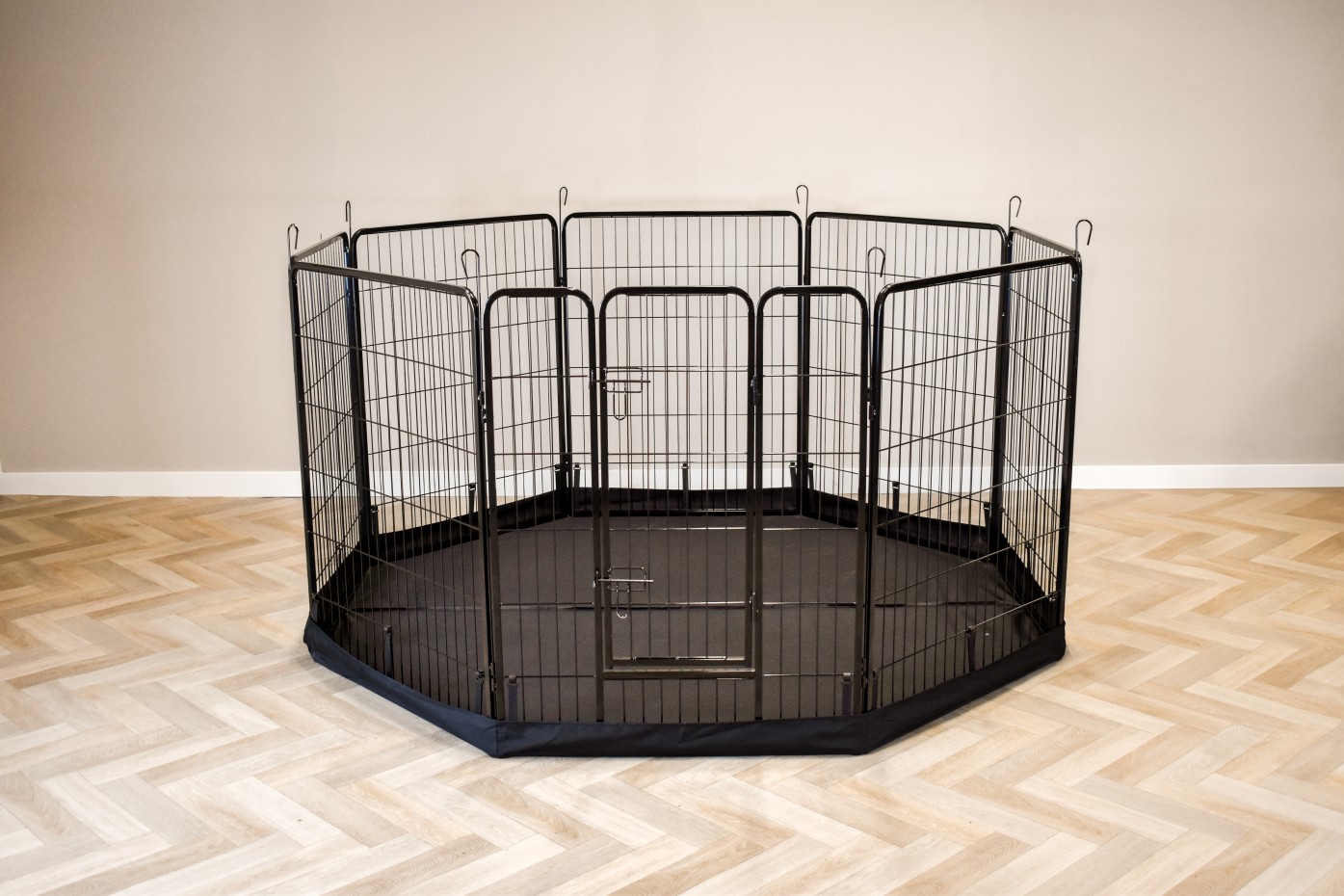 Dit zwarte grondzeil voor de ren Octa is een eenvoudige, maar doeltreffende oplossing tegen de ergste rommel in de ren. Hierdoor blijft alles netjes binnen de ren en is de vloer direct beschermd tegen de meeste rommel en beschadigingen. Het 8-hoekige grondzeil is gemakkelijk te bevestigen met klemmetjes aan een elastiek. Hierdoor blijft de bodem netjes op z'n plek.