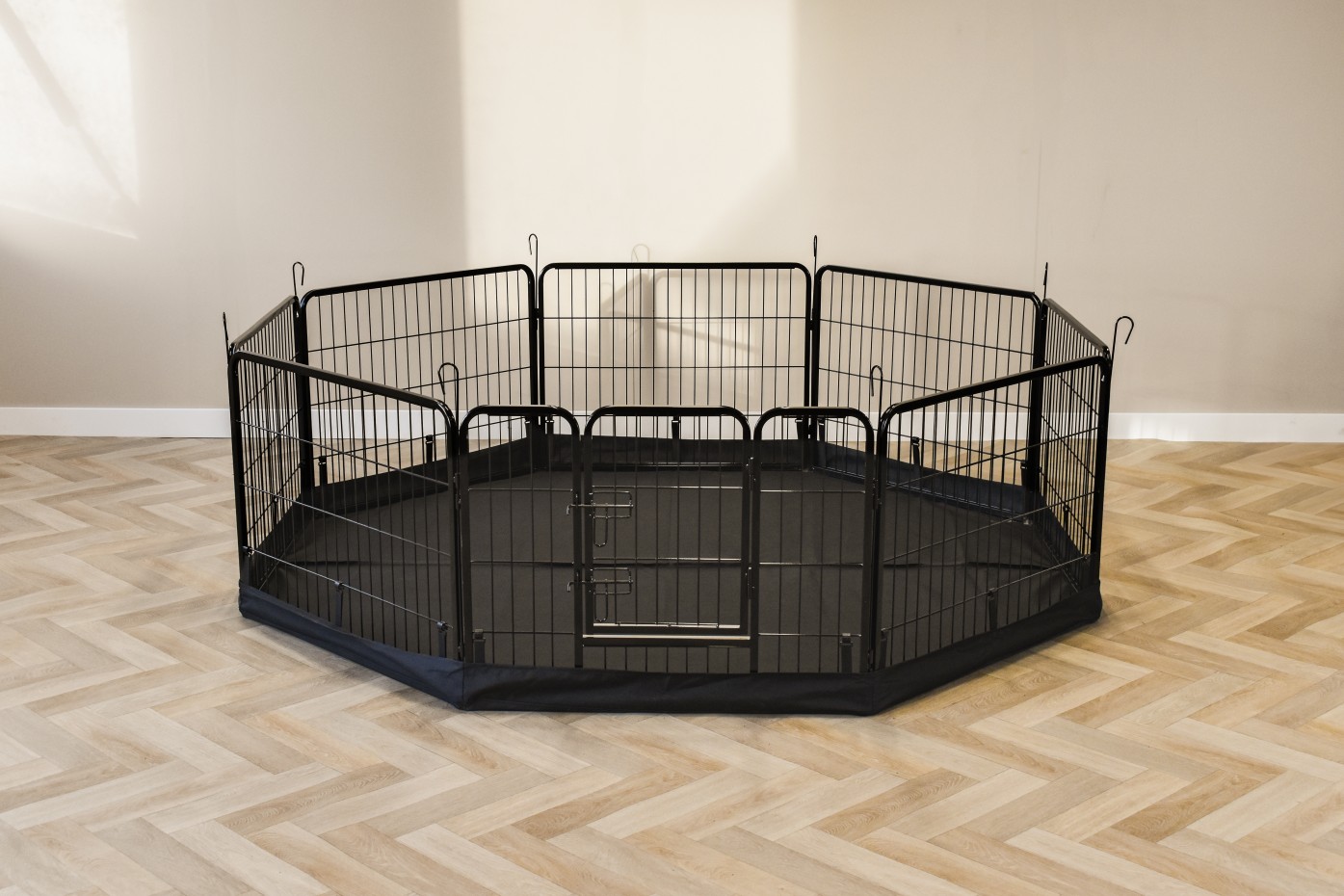 Dit zwarte grondzeil voor de ren Octa is een eenvoudige, maar doeltreffende oplossing tegen de ergste rommel in de ren. Hierdoor blijft alles netjes binnen de ren en is de vloer direct beschermd tegen de meeste rommel en beschadigingen. Het grondzeil is gemakkelijk te bevestigen met klemmetjes aan een elastiek. Hierdoor blijft de bodem netjes op z'n plek.