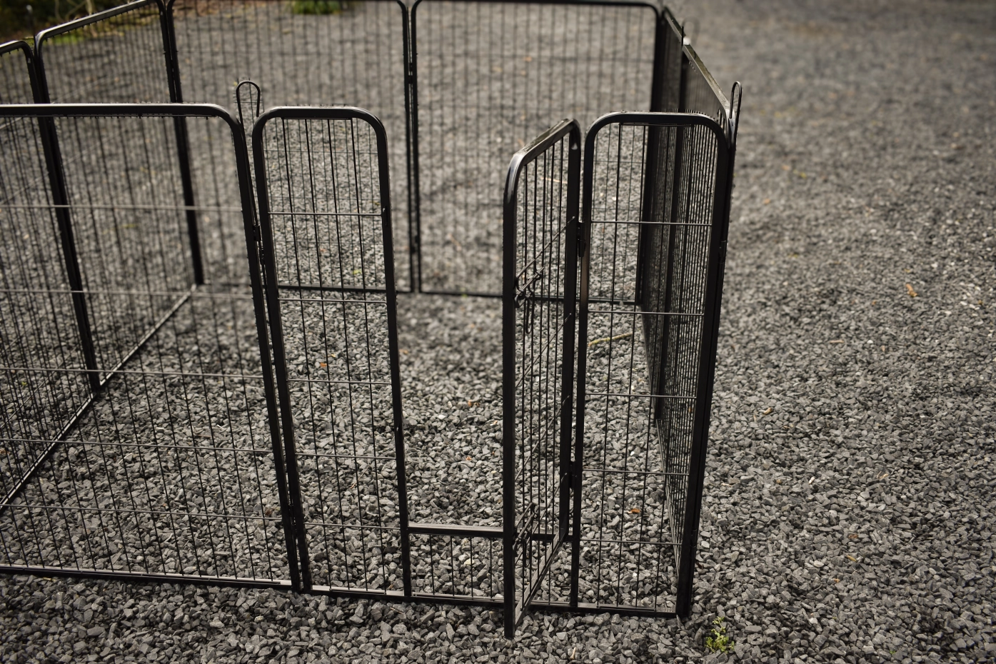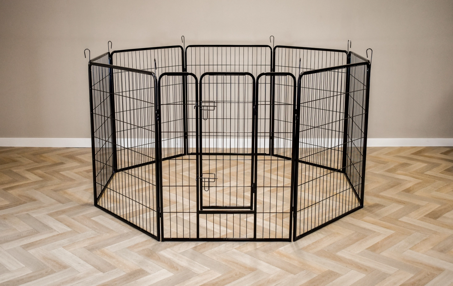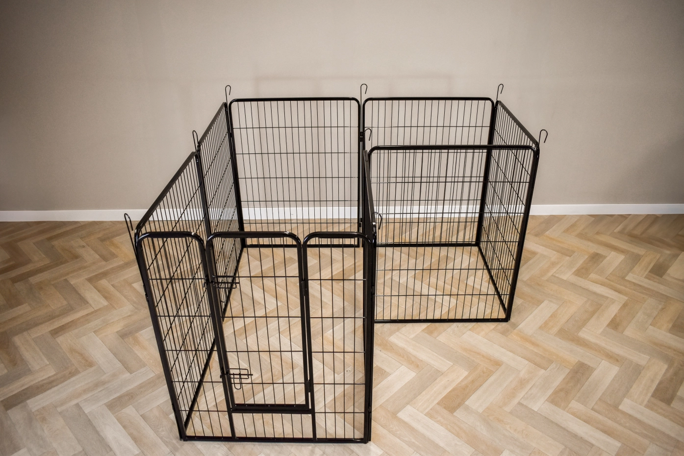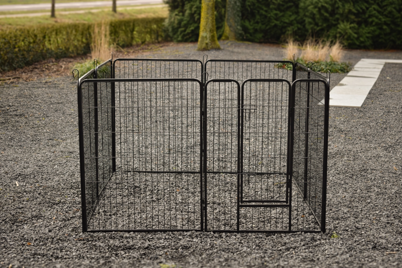 Konijnenren Octa met een hoogte van 100cm. Deze konijnenren is gemaakt van gepoedercoat staal. Konijnenren Octa bestaat uit 8 panelen van ca. 79x100cm. De totale omtrek van deze ren is dus zo'n 640cm. De Octa wordt vaak gebruikt voor konijnen en voor puppy's, maar kan natuurlijk prima als dierenren voor allerlei andere dieren gebruikt worden.