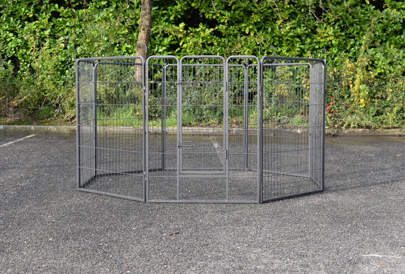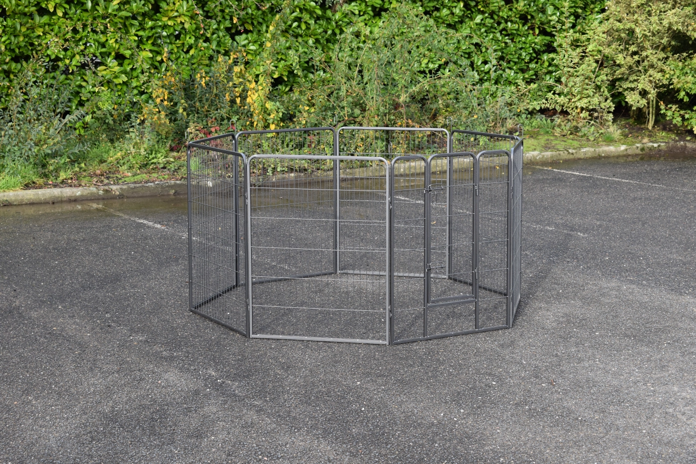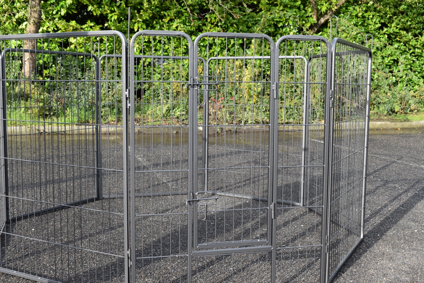 Konijnenren Octa met een hoogte van 100cm. Deze konijnenren is gemaakt van gepoedercoat staal. Konijnenren Octa bestaat uit 8 panelen van ca. 79x100cm. De totale omtrek van deze ren is dus zo'n 640cm. De Octa wordt vaak gebruikt voor konijnen en voor puppy's, maar kan natuurlijk prima als dierenren voor allerlei andere dieren gebruikt worden.