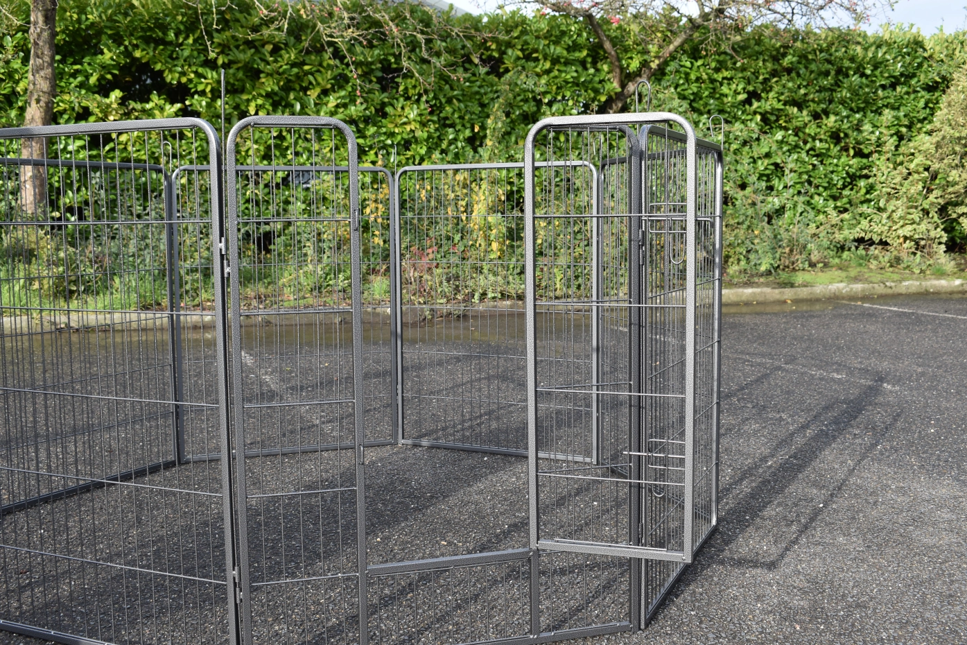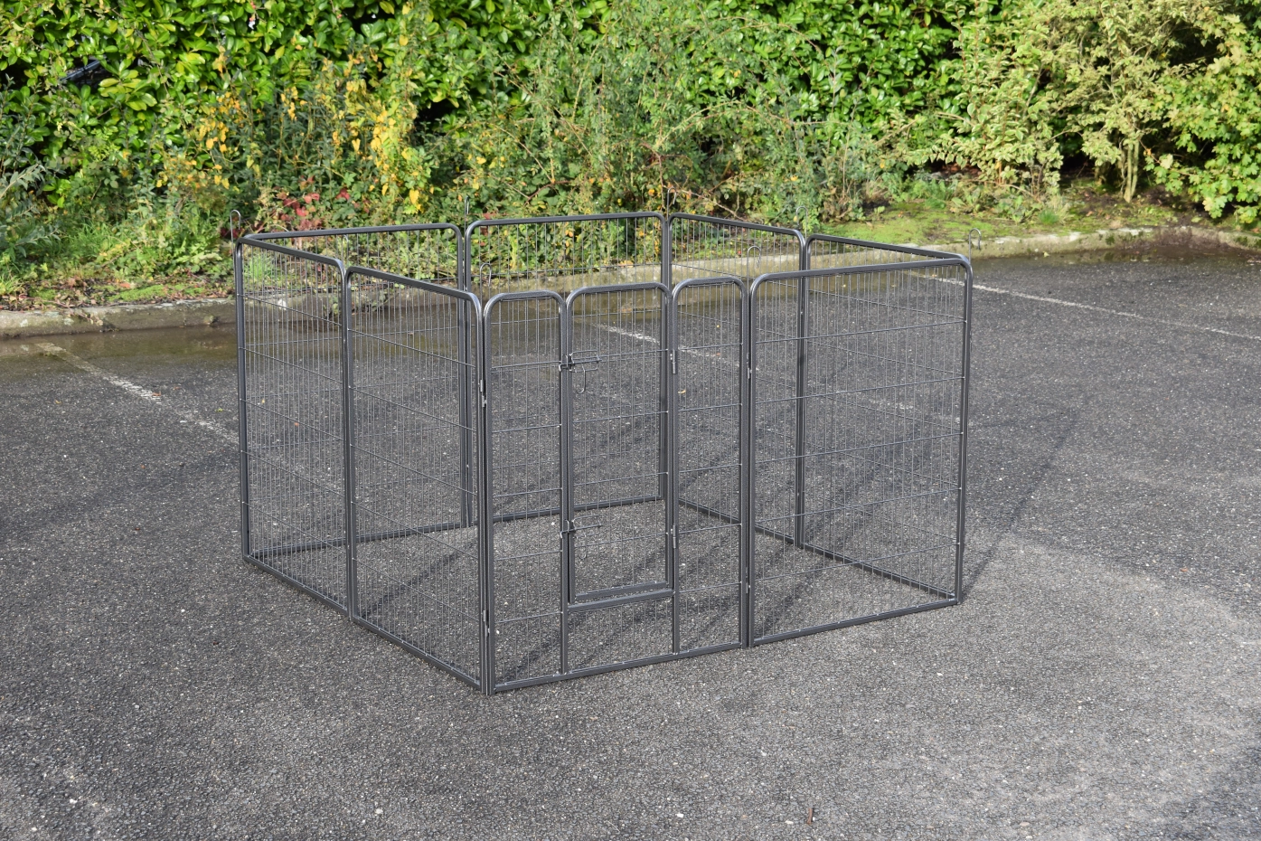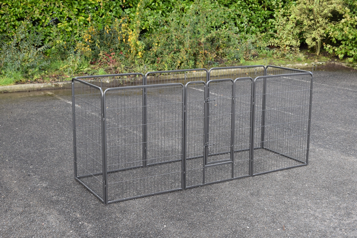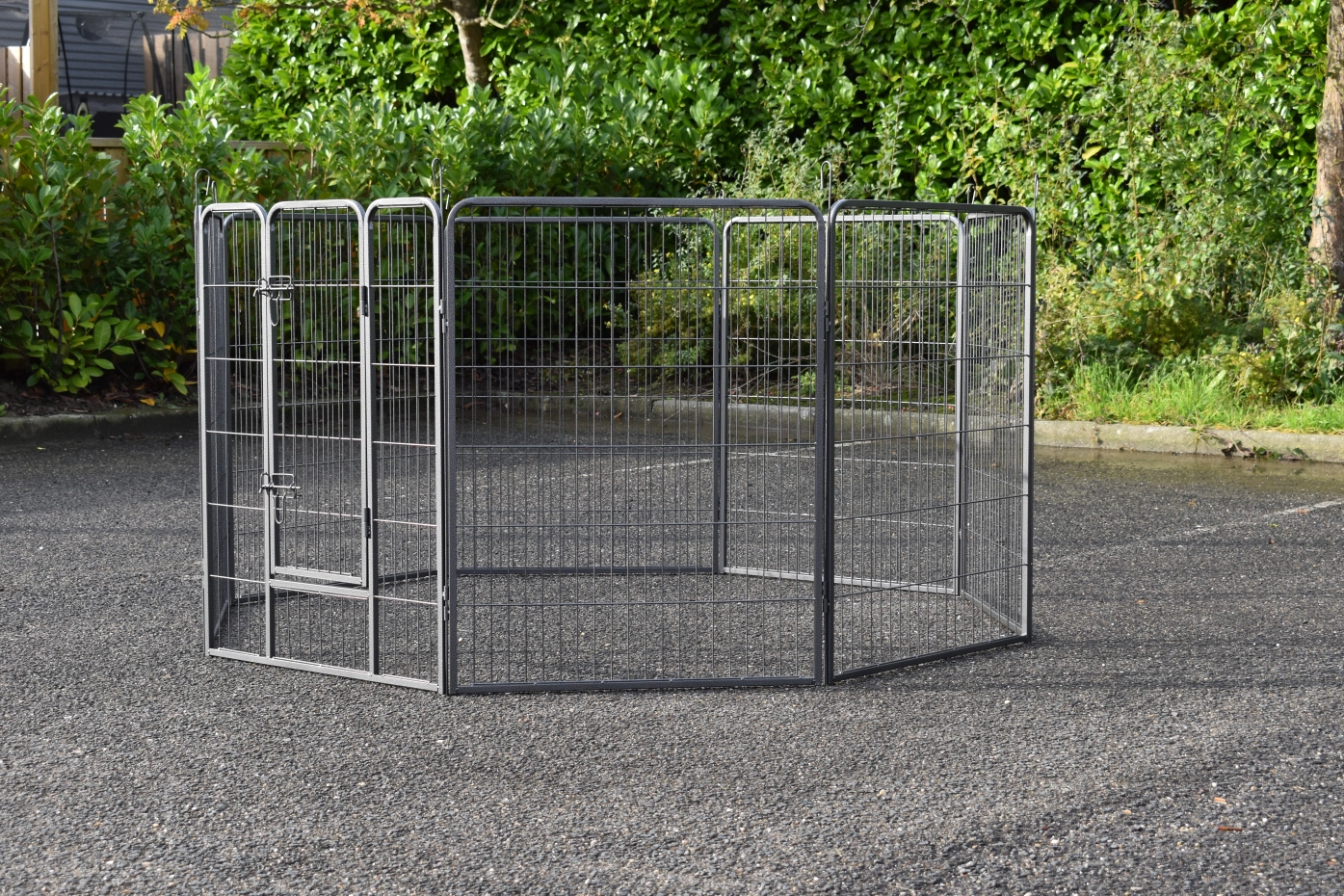 Konijnenren Octa met een hoogte van 100cm. Deze konijnenren is gemaakt van gepoedercoat staal. Konijnenren Octa bestaat uit 8 panelen van ca. 79x100cm. De totale omtrek van deze ren is dus zo'n 640cm. De Octa wordt vaak gebruikt voor konijnen en voor puppy's, maar kan natuurlijk prima als dierenren voor allerlei andere dieren gebruikt worden.