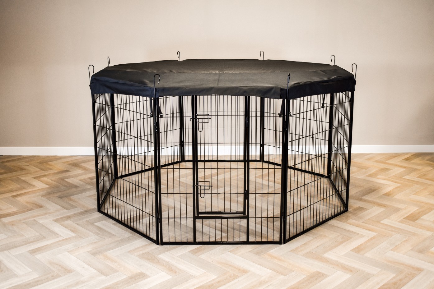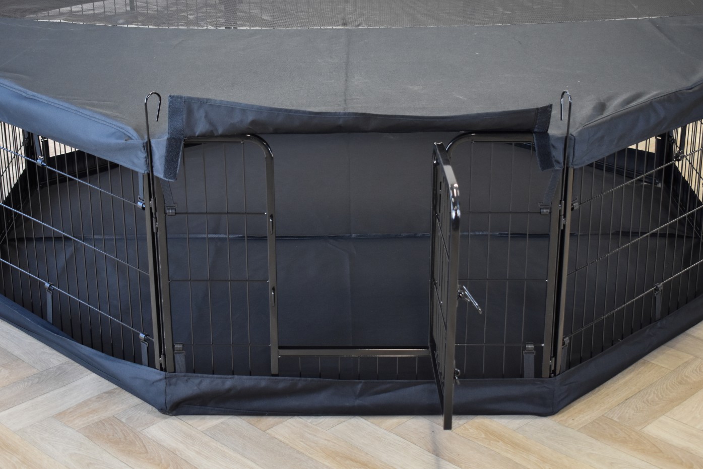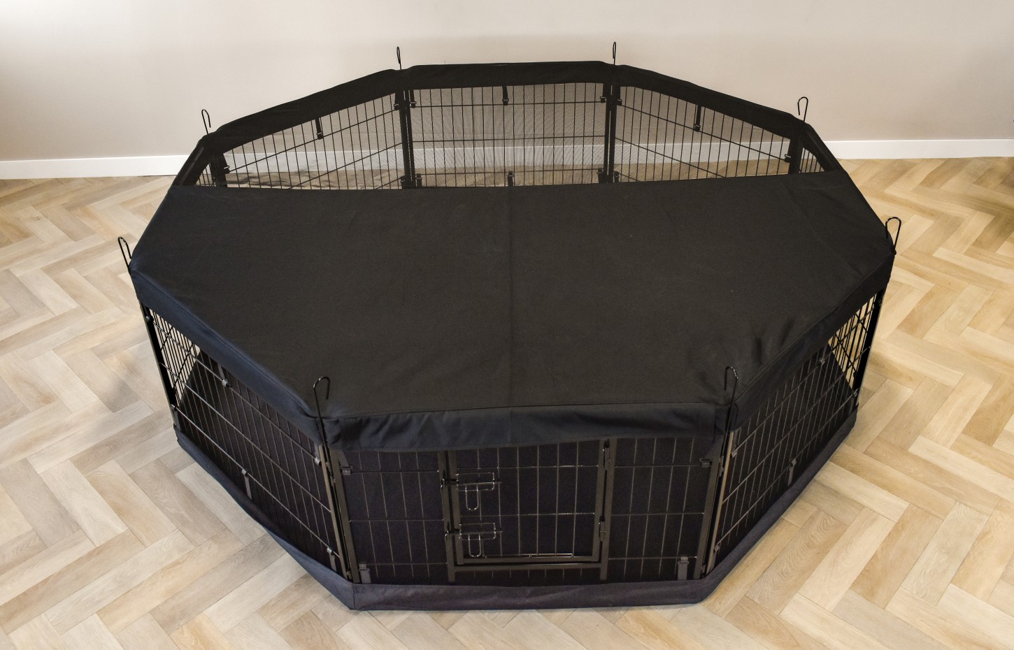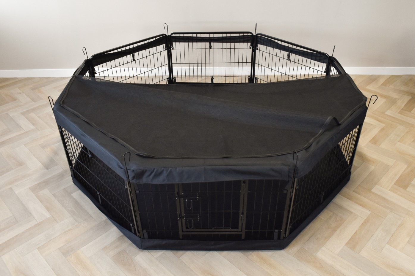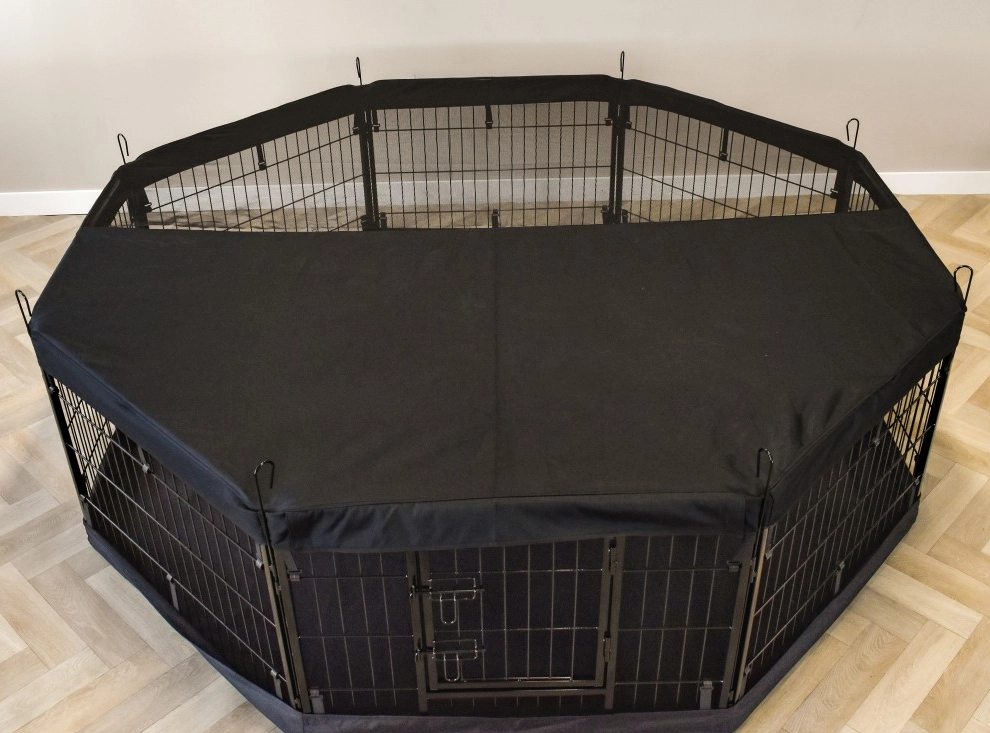 Luxe zonnescherm / afdeknet voor de ren Octa is een eenvoudige, maar doeltreffende bescherming tegen zonlicht in de ren en afdekken zodat de konijnen of puppy's er niet uit kunnen springen. Dit zonnescherm is gemakkelijk te bevestigen met klemmetjes aan een elastiek. Hierdoor blijft de cover netjes op z'n plek.