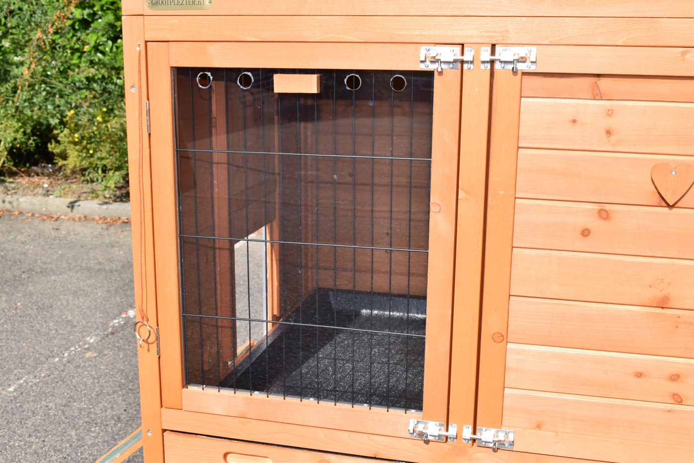 Isolatieplaatje voor het nachthok van de Prestige Large. Een prachtige oplossing om uw konijnen of kippen optimaal te beschermen tegen wind en regen. Het isolatieplaatje is eenvoudig te plaatsen doordat er een houten handvat aan zit.