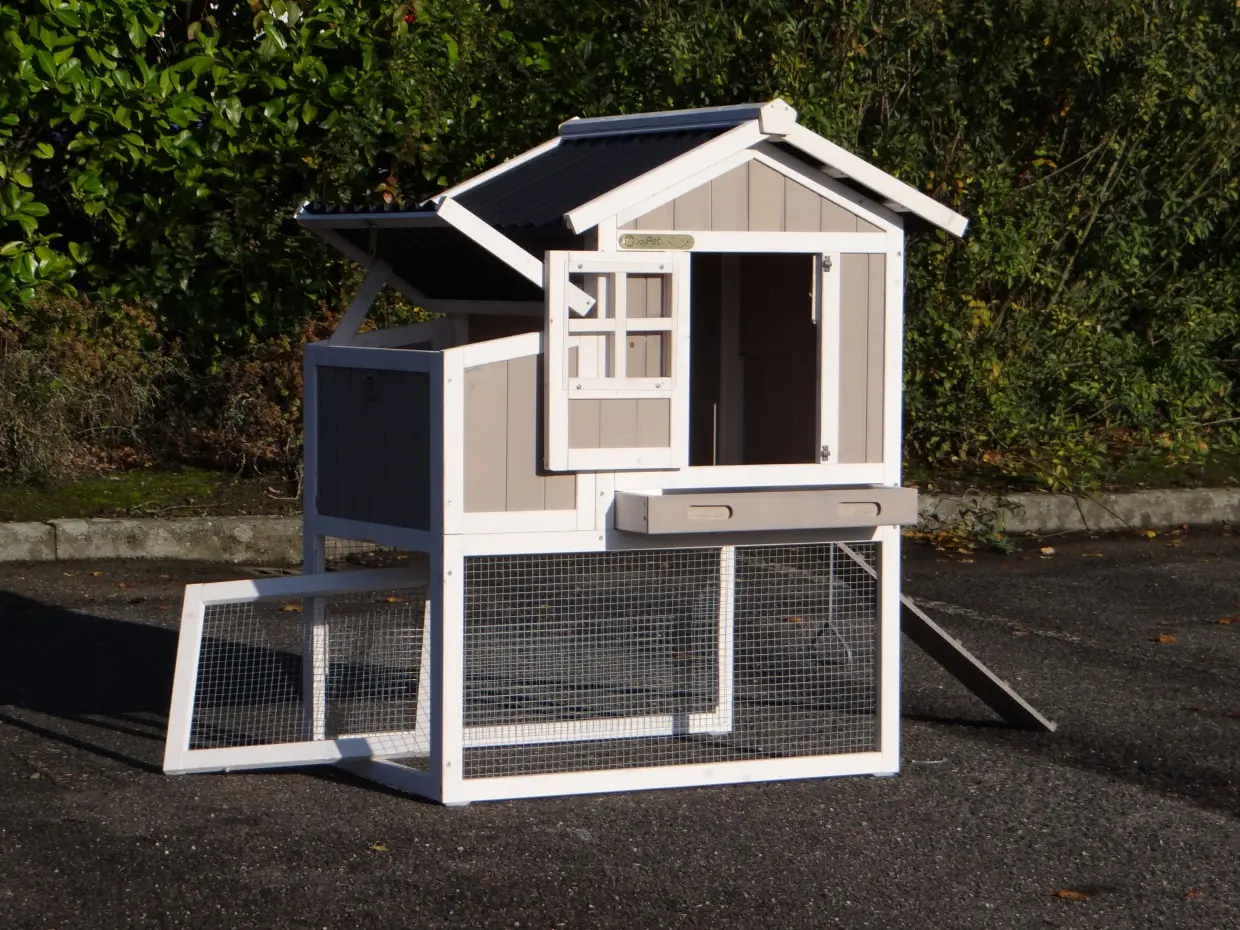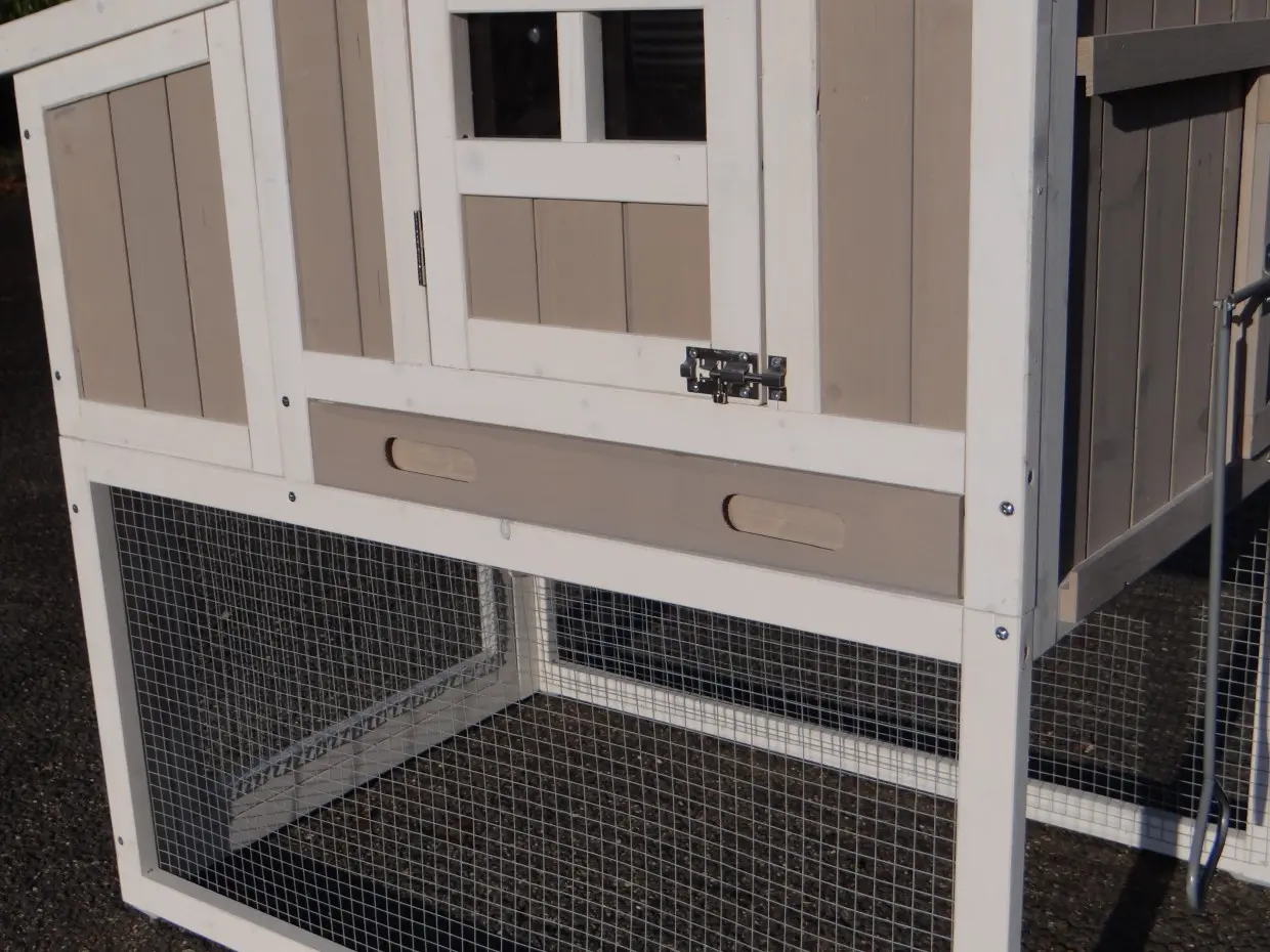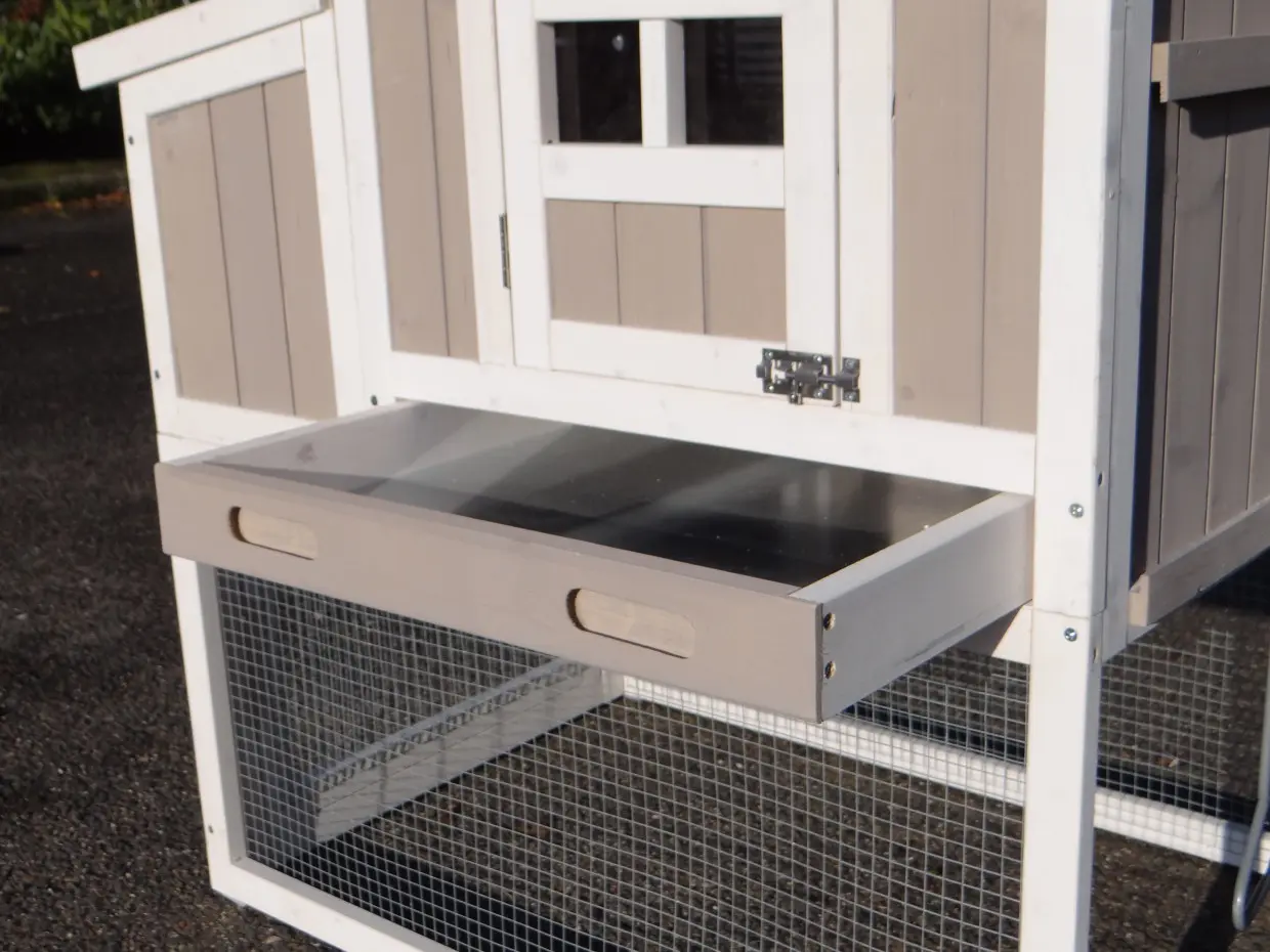 • Metalen schuiflade (zink) om het hok handig schoon te maken