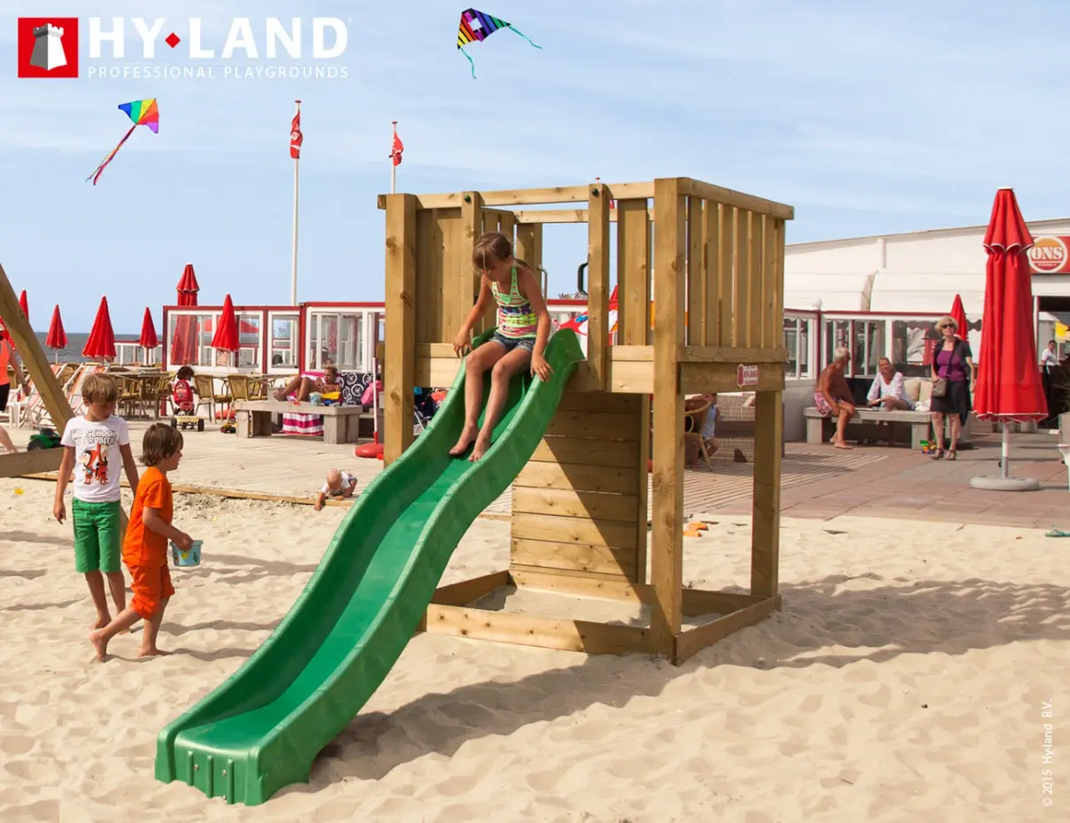 - Het Hy-Land speeltoestel wordt geleverd in geïmpregneerd vurenhout