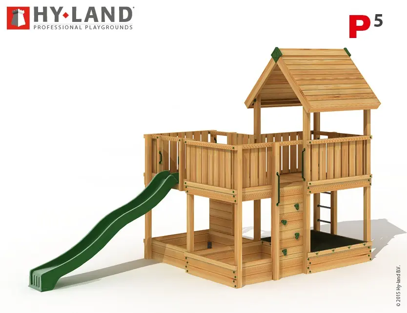 - Het Hy-Land speeltoestel wordt geleverd in geïmpregneerd vurenhout