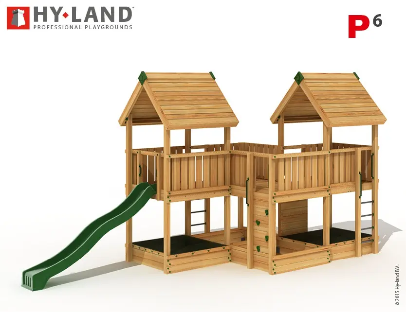- Het Hy-Land speeltoestel wordt geleverd in geïmpregneerd vurenhout