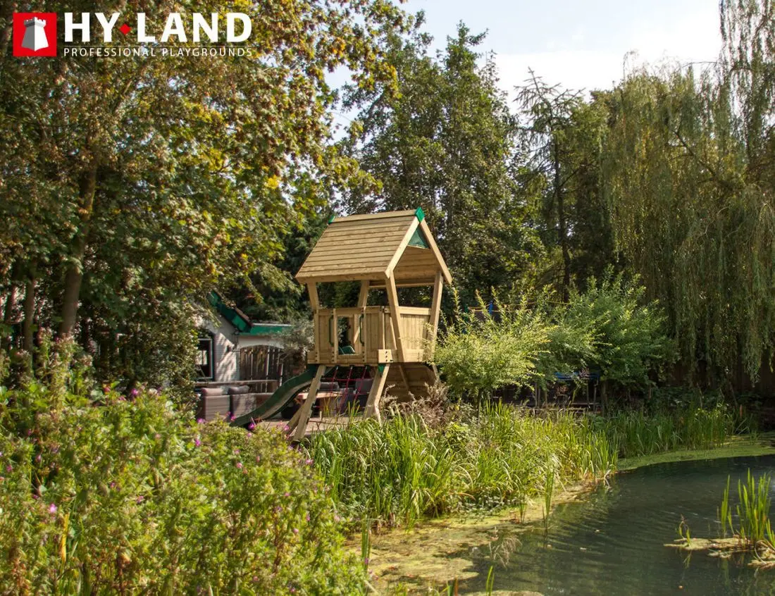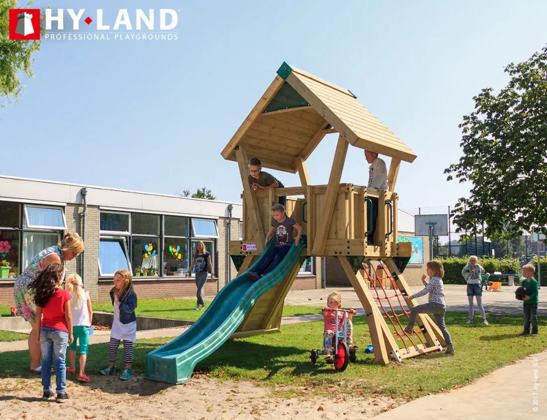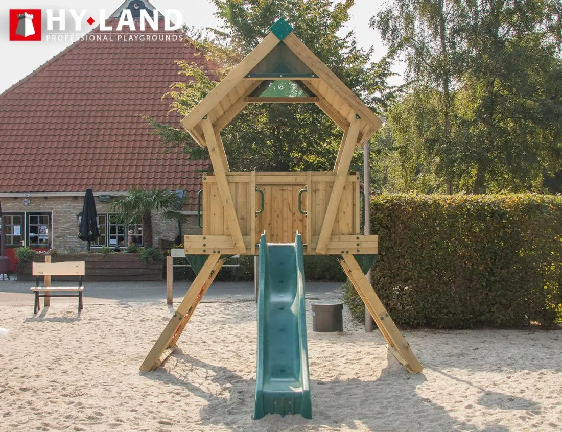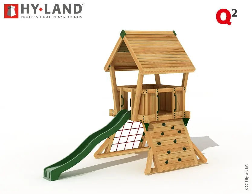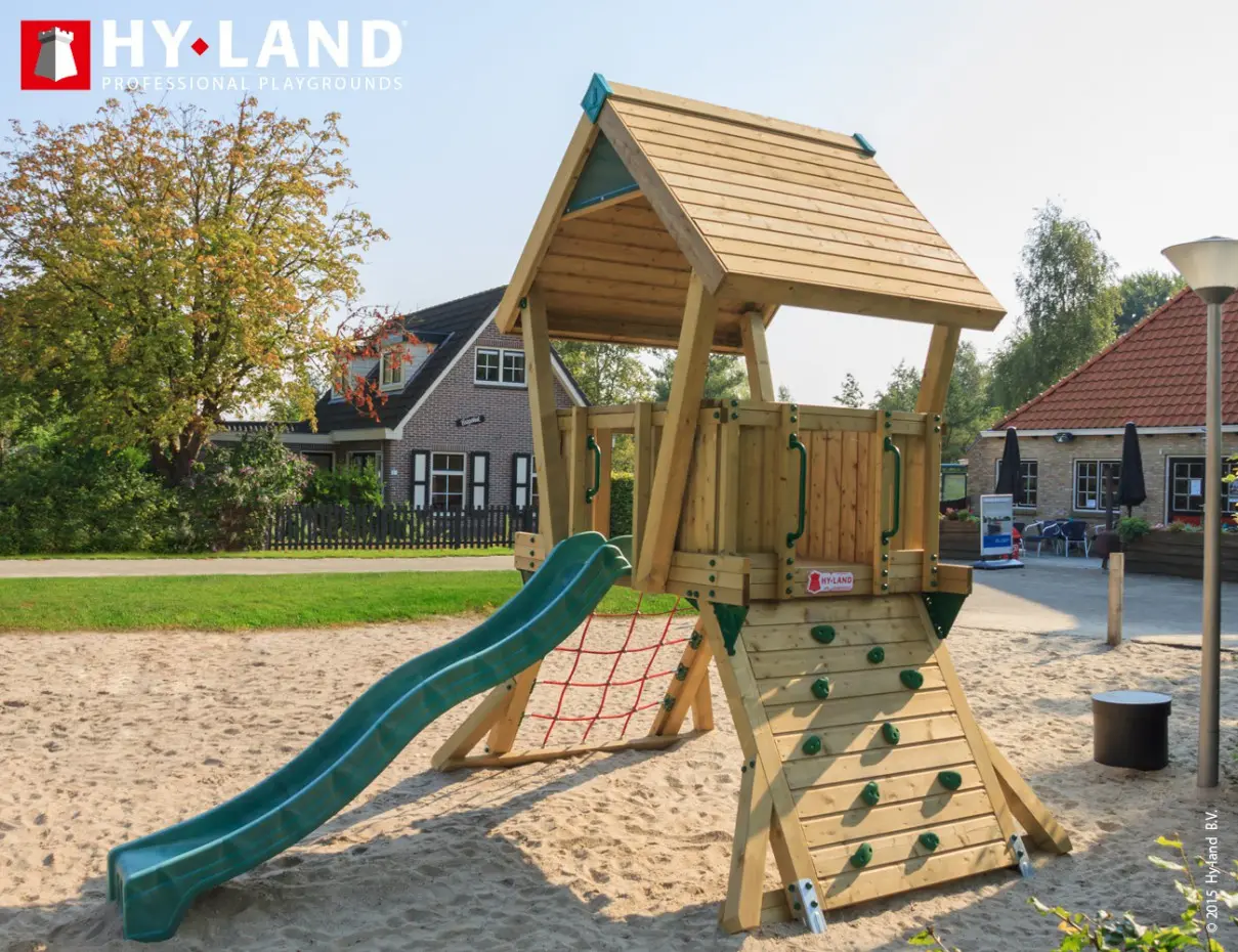 - Het Hy-Land speeltoestel wordt geleverd in geïmpregneerd vurenhout