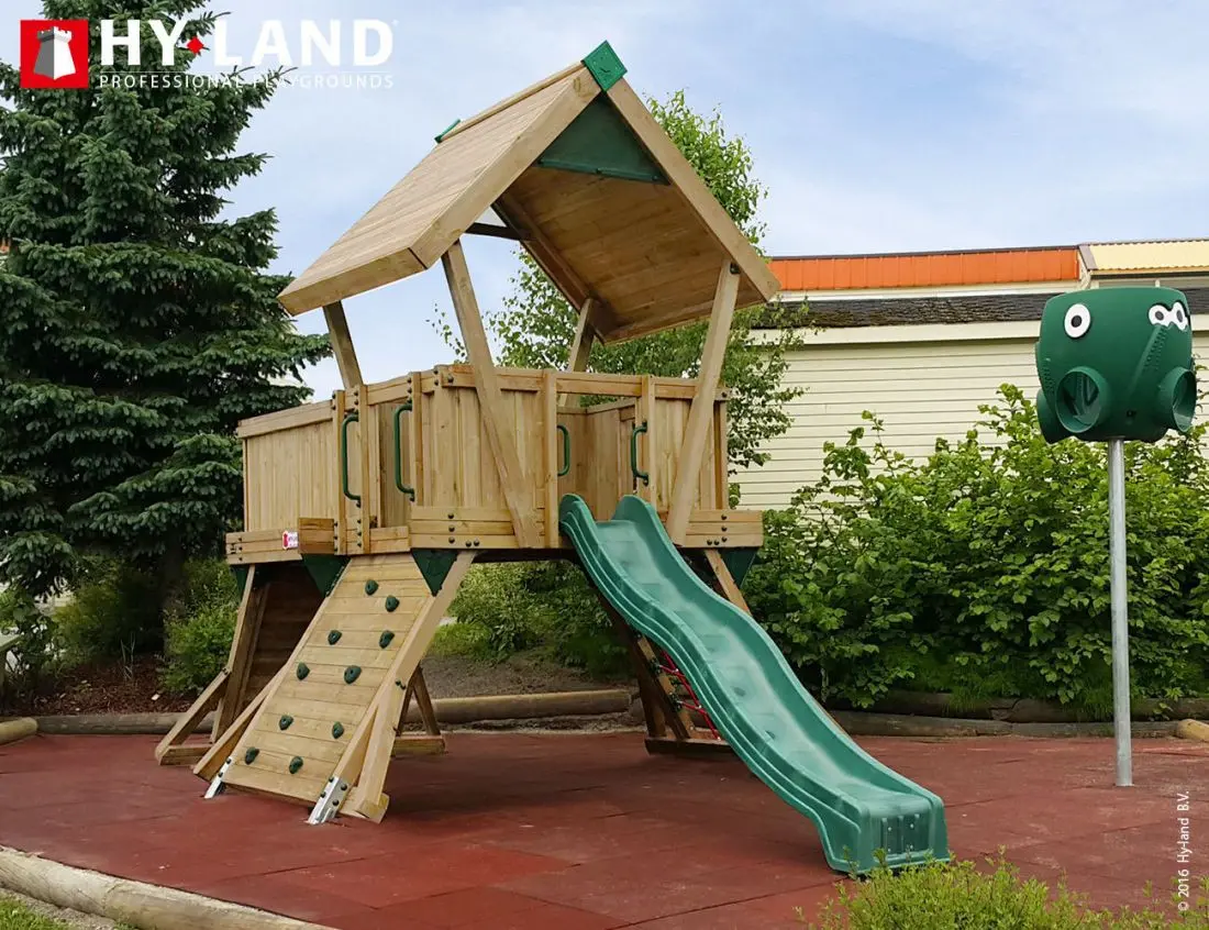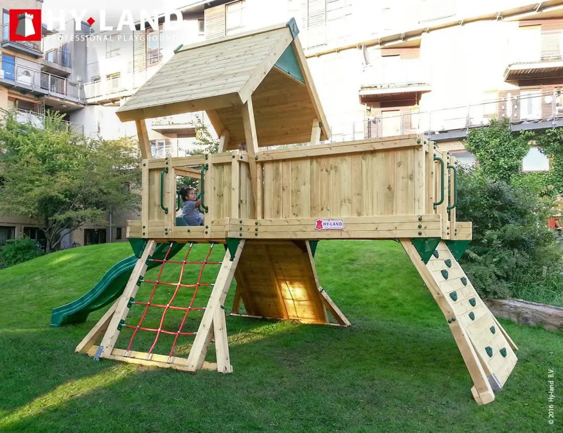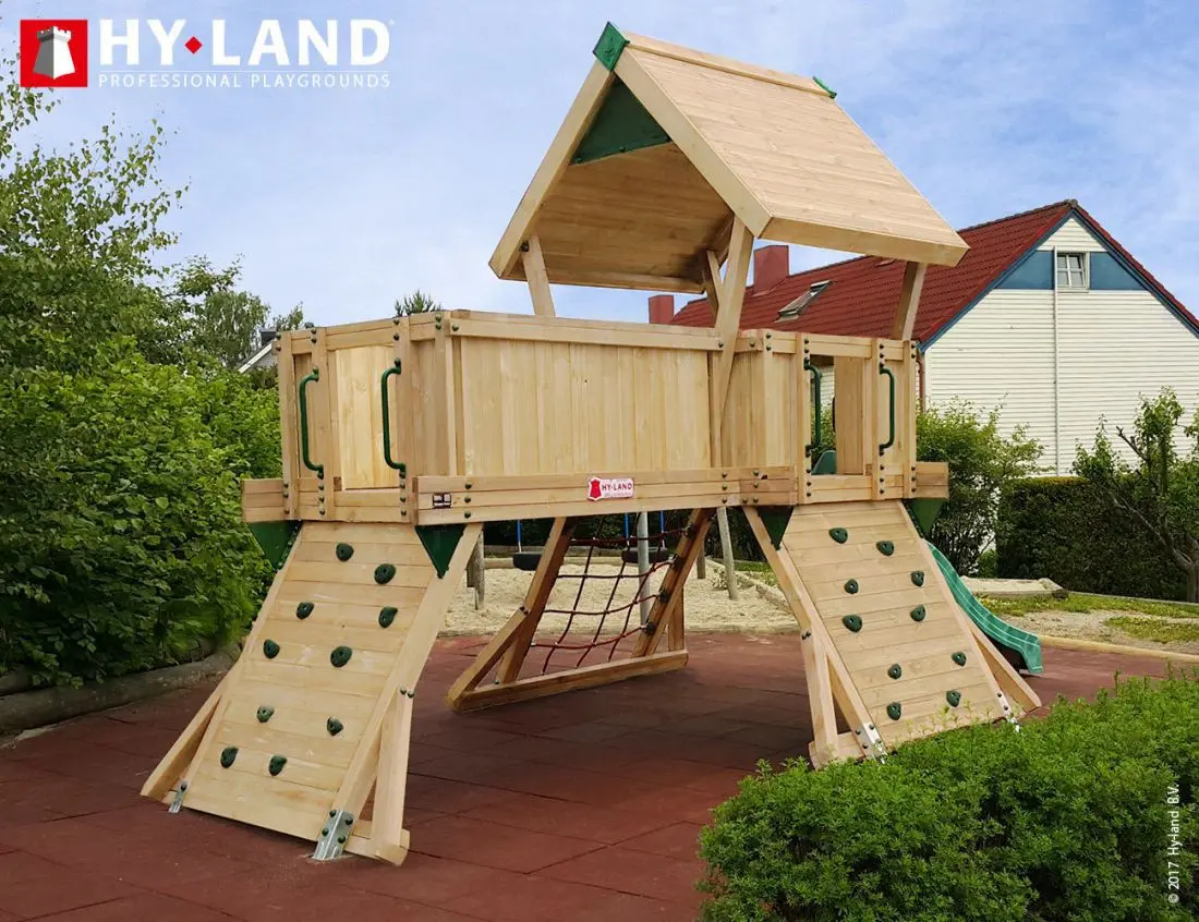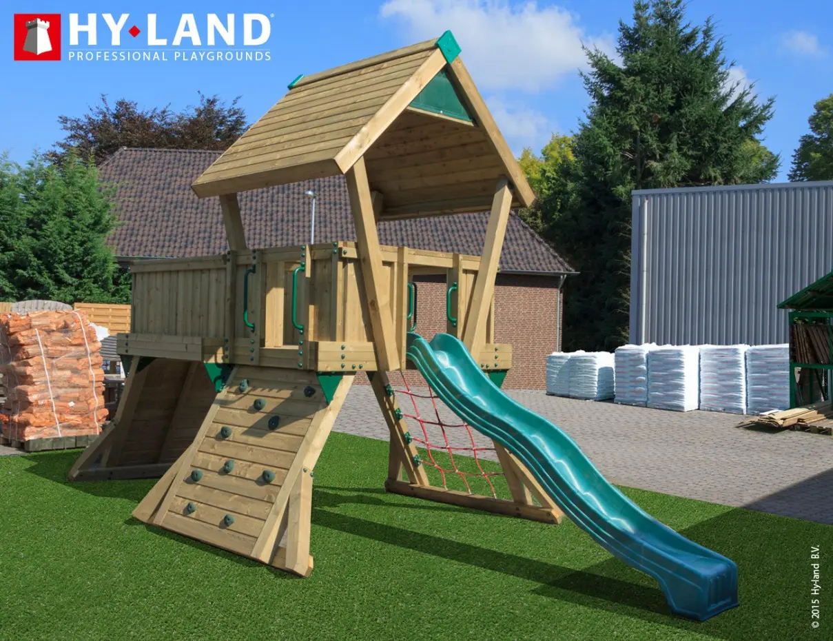 - Het Hy-Land speeltoestel wordt geleverd in geïmpregneerd vurenhout