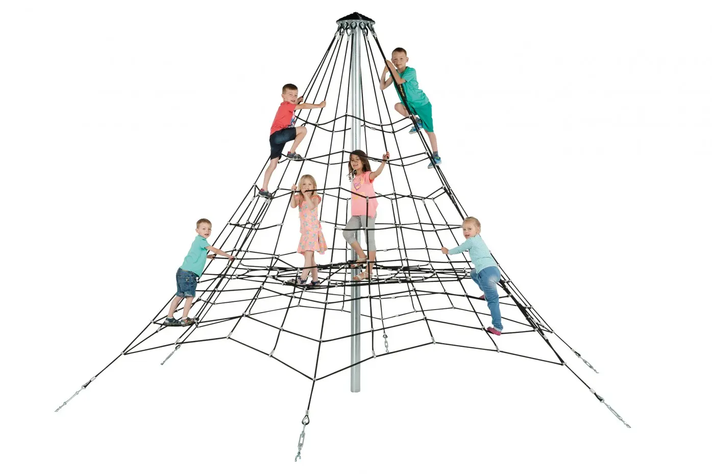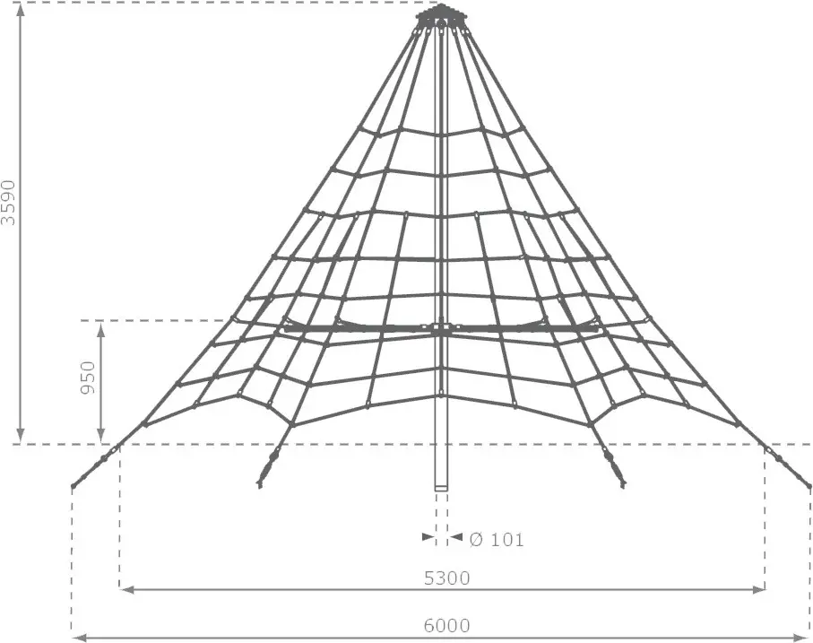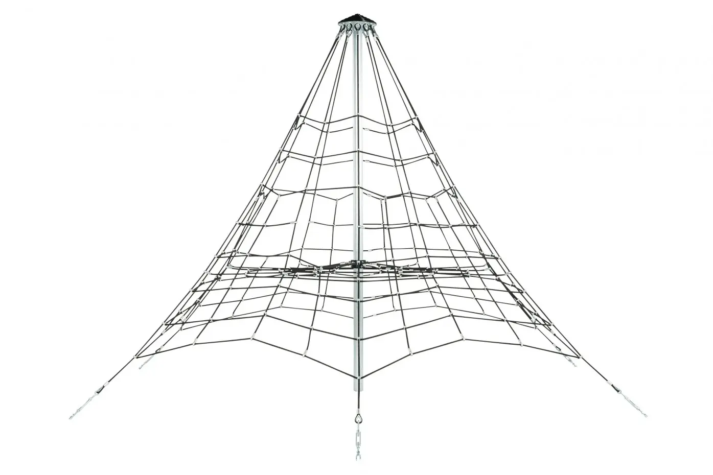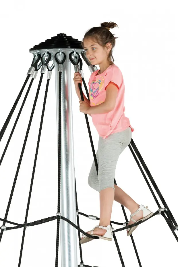 Piramide klimnet Armed Rope biedt uitdaging aan ieder kind. Een hoogte van 3,5m. Het klimnet is geschikt voor openbaar professioneel gebruik, zoals op de camping of in speeltuinen. Uitgerust met stevig gewapend touw, aluminium verbindingsstukken en gegalvaniseerde hoofdpaal. Te plaatsen in beton. Uitgerust met beide een anker set en kabelspanners.