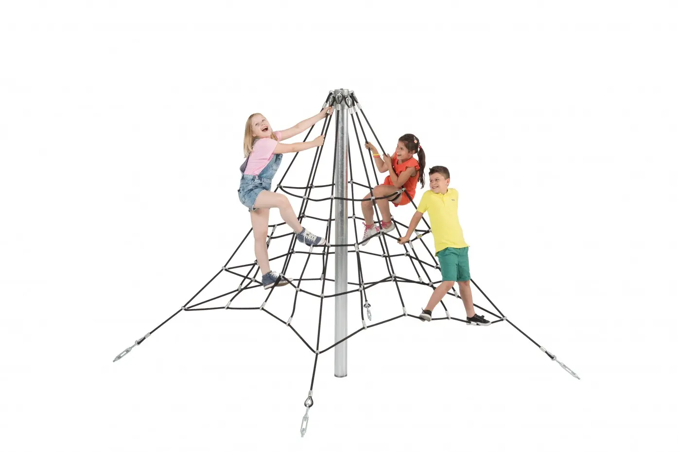 Piramide klimnet met een hoogte van 2m. Het klimnet is geschikt voor openbaar gebruik, zoals op de camping of in een speeltuin.