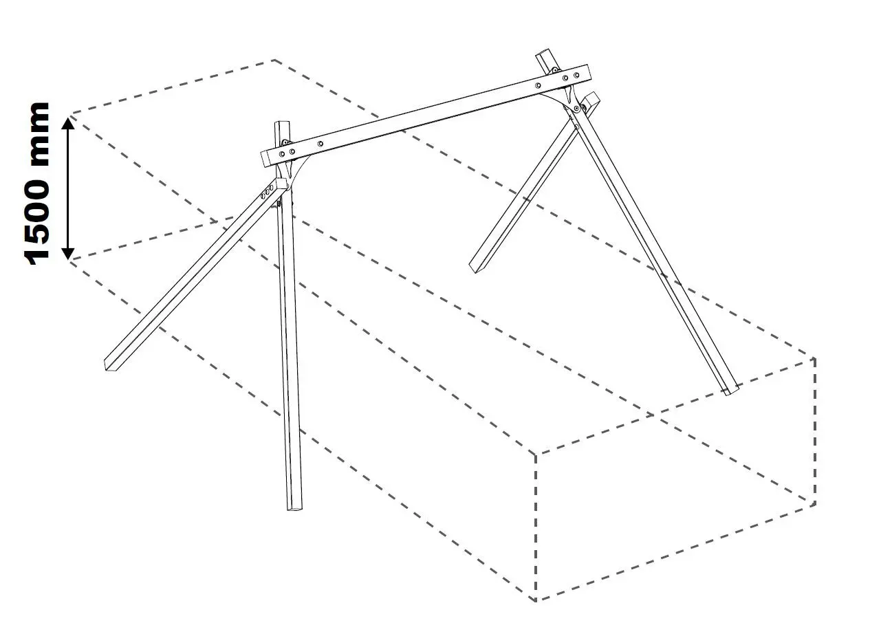 - Valhoogte 150cm. Aanbevolen ondergrond: zand, snippers of schors.