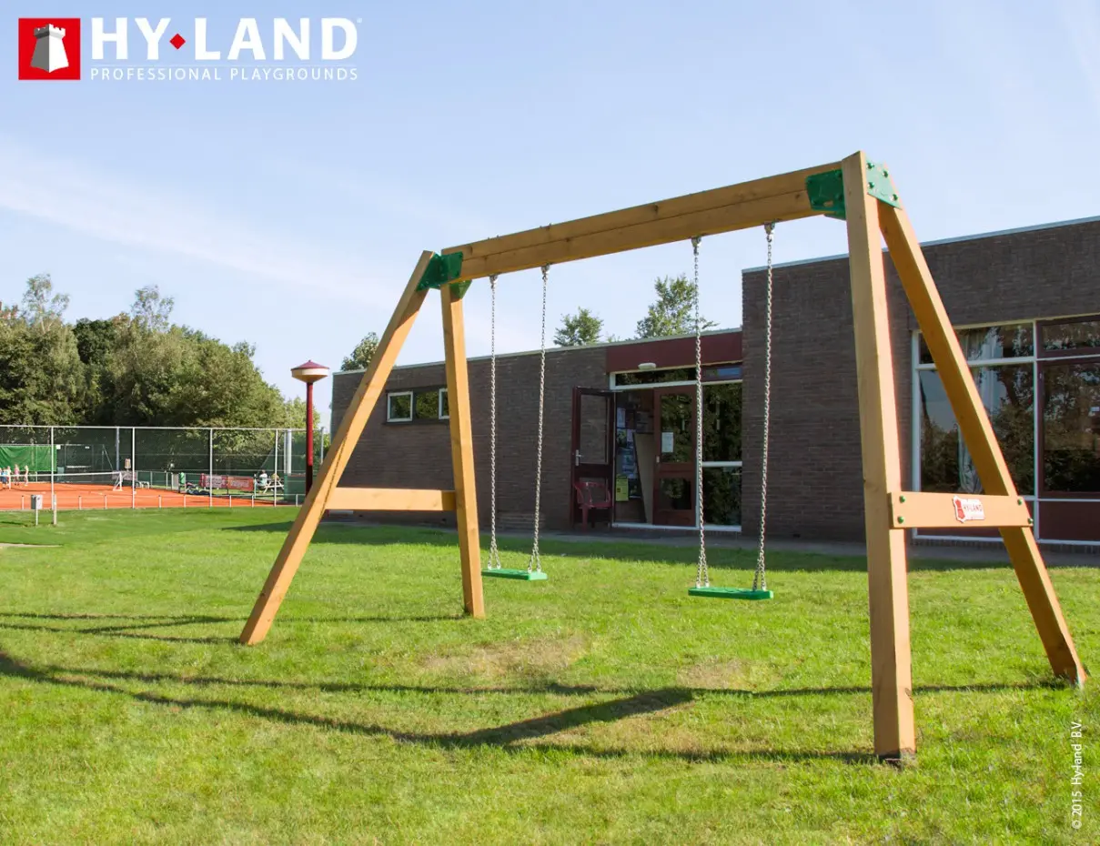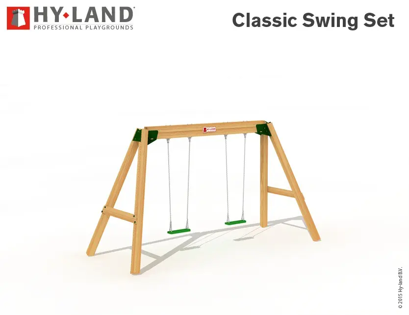 Op zoek naar een professionele schommel voor uw schoolplein? Schommel Hy-Land Classic Swing Set is een houten schommel met schommelzitjes, geschikt voor professioneel gebruik.