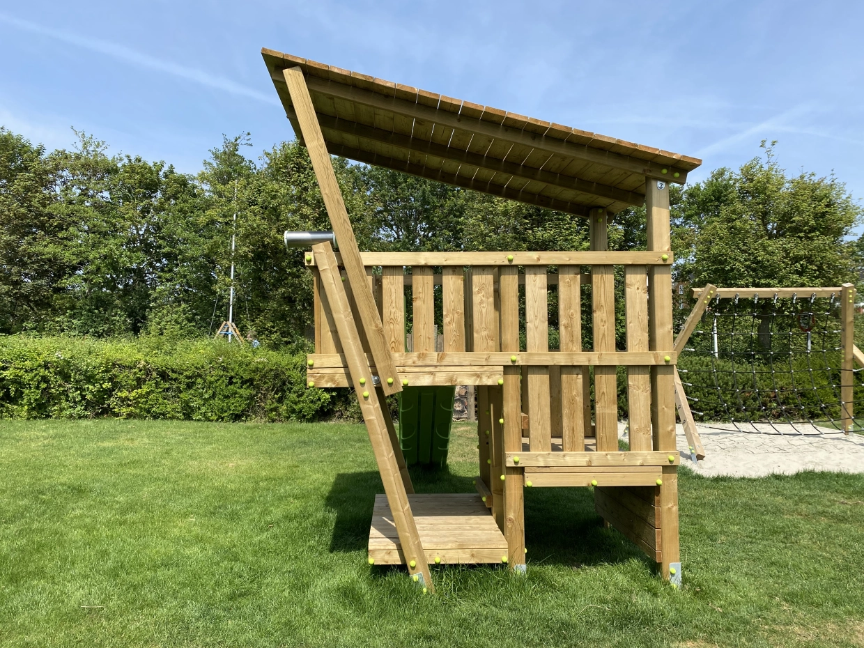 - Geïmpregneerd vurenhout, waar nodig in sterkteklasse C24, ideaal voor onderhoudsvrije speeltoestellen. Op maat gezaagd en afgeronde hoeken.