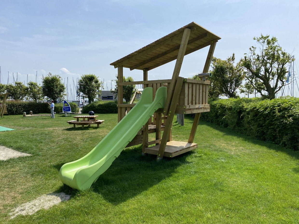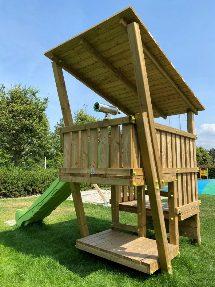 - Mooi zelfbouwpakket, eenvoudig te monteren zonder specialist of vakman. Geen speciale keuring achteraf vereist. Geschikt voor openbare speelplaats, camping, restaurant, school.