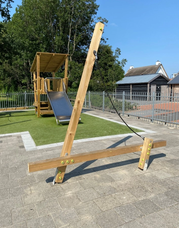 - Geïmpregneerd vurenhout, waar nodig in sterkteklasse C24, ideaal voor onderhoudsvrije speeltoestellen. Op maat gezaagd en afgeronde hoeken.