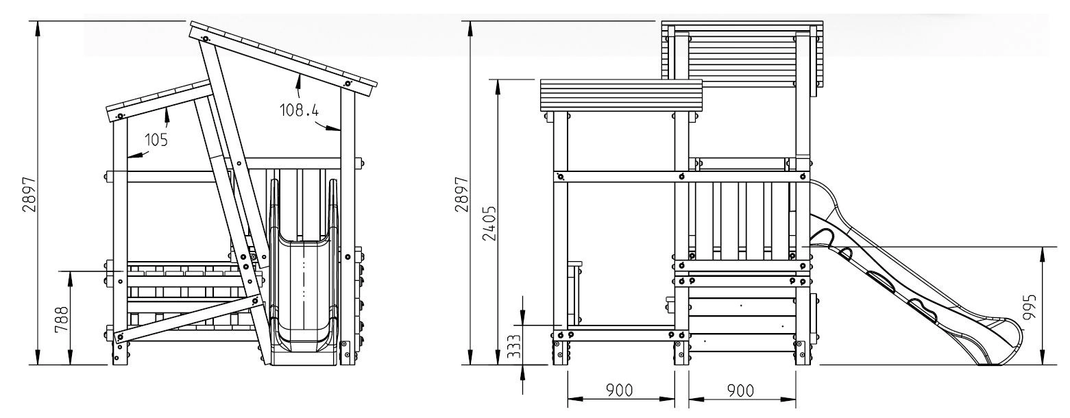- Mooi zelfbouwpakket, eenvoudig te monteren zonder specialist of vakman. Geen speciale keuring achteraf vereist. Geschikt voor openbare speelplaats, camping, restaurant, school.
