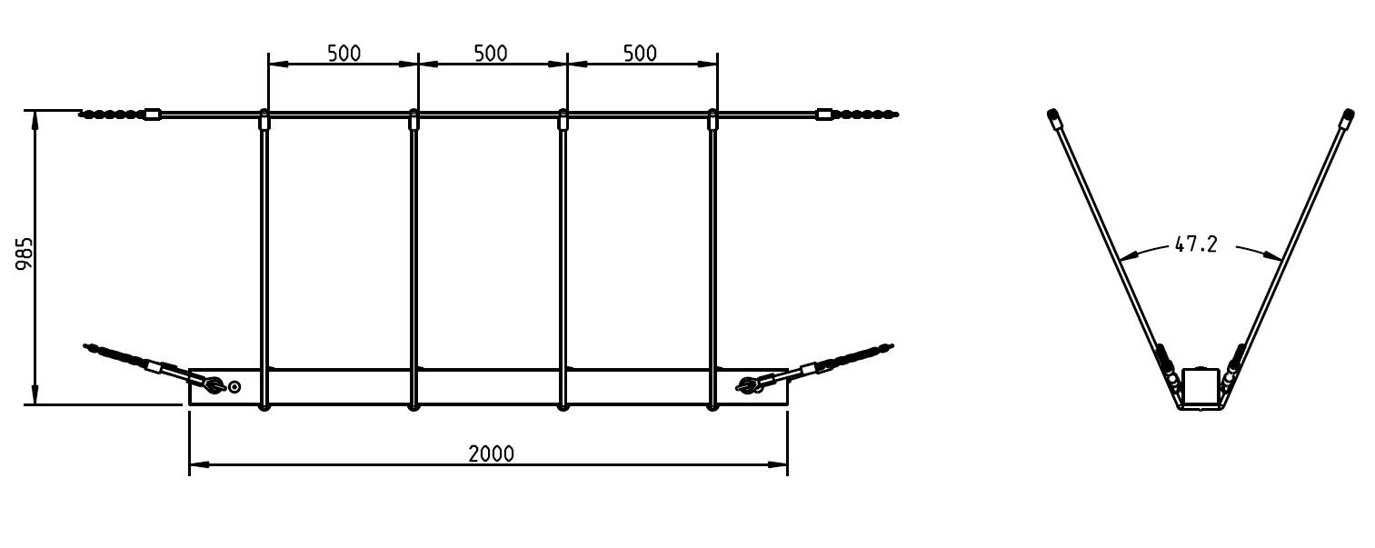 - De touwen zijn van gewapend touw. Dit betekent een stalen kern, omwikkeld met pp-touw.