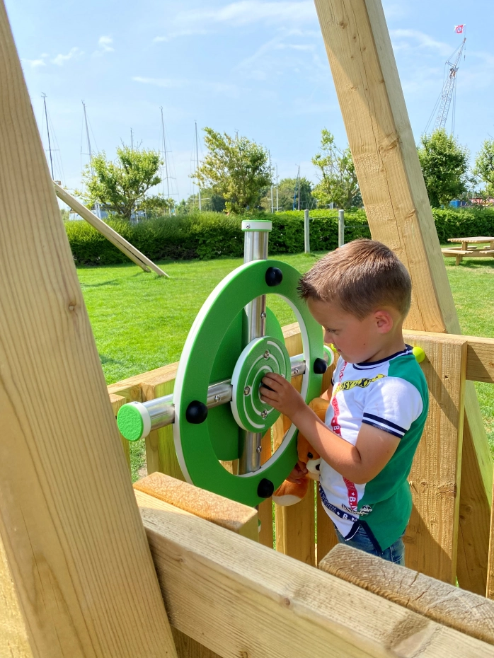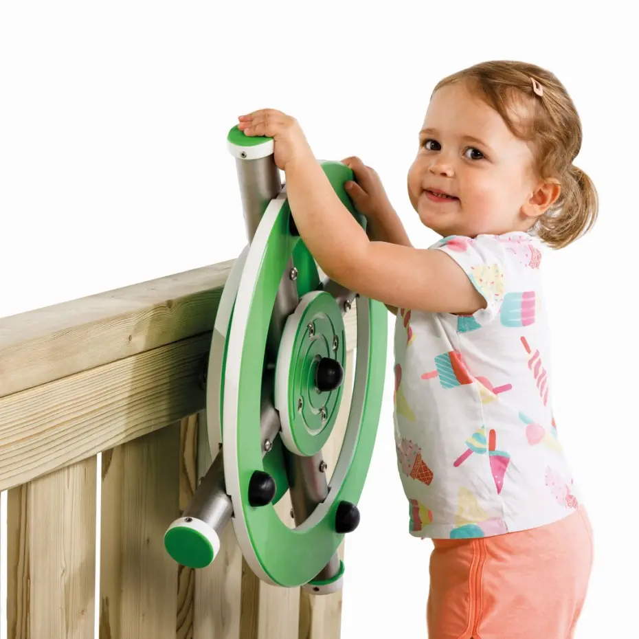 Extra groot RVS Stuurwiel om een speeltoestel nog aantrekkelijker te maken. Een stuurwiel spreekt altijd erg aan bij kinderen; de fantasie wordt geprikkeld en er ontstaan de leukste rollenspellen. Het stuurwiel is gemaakt van RVS en stevig HDPE materiaal en is leuk te combineren met de Telescoop en de Bel uit de 'X' collectie van White Rhino.