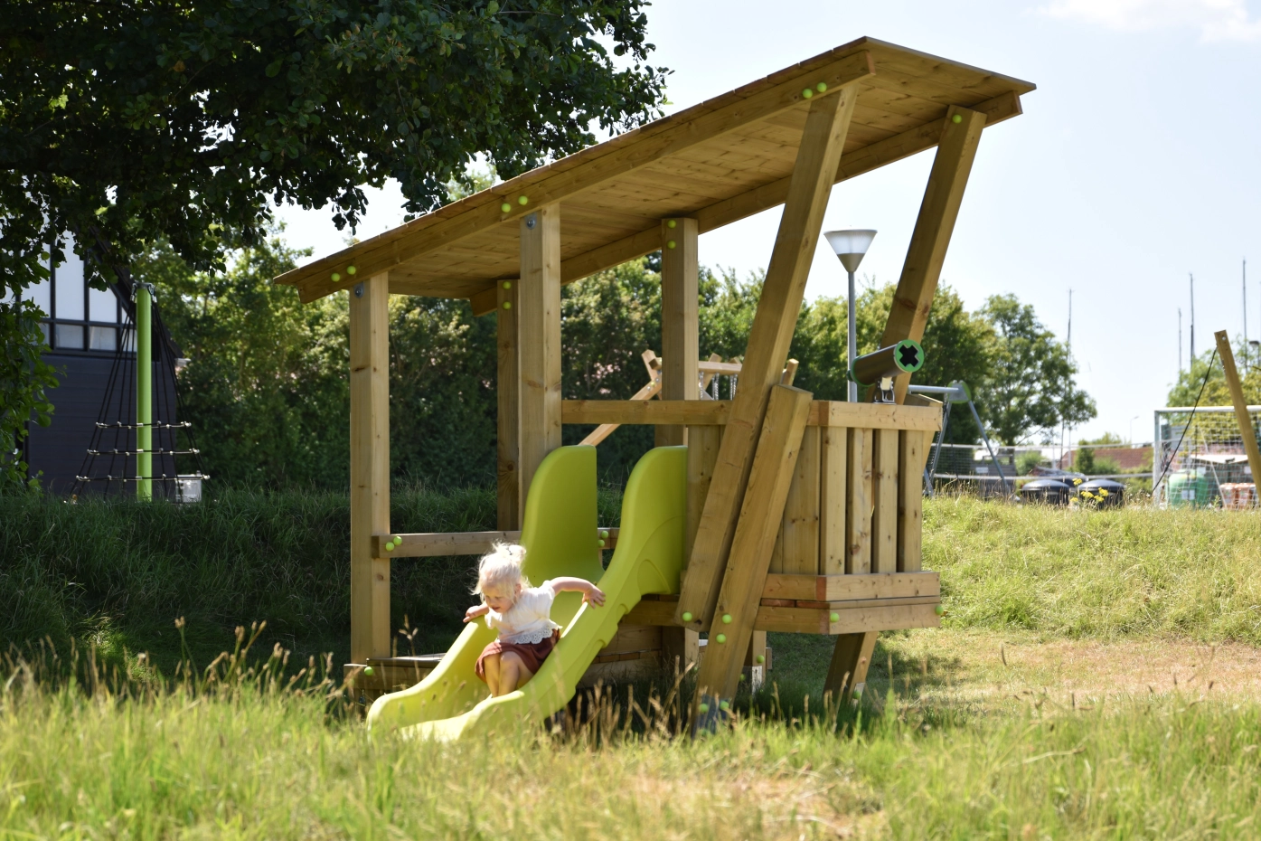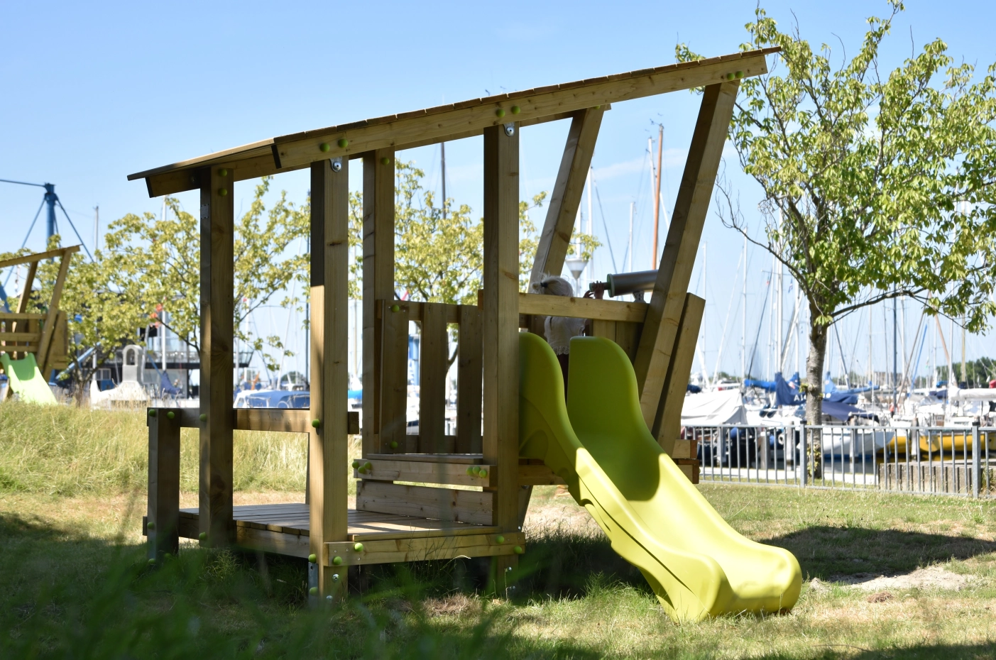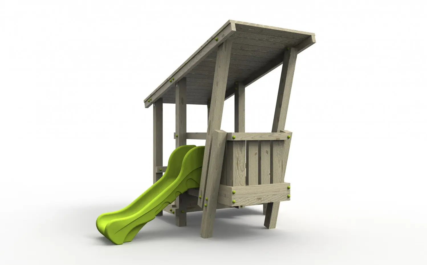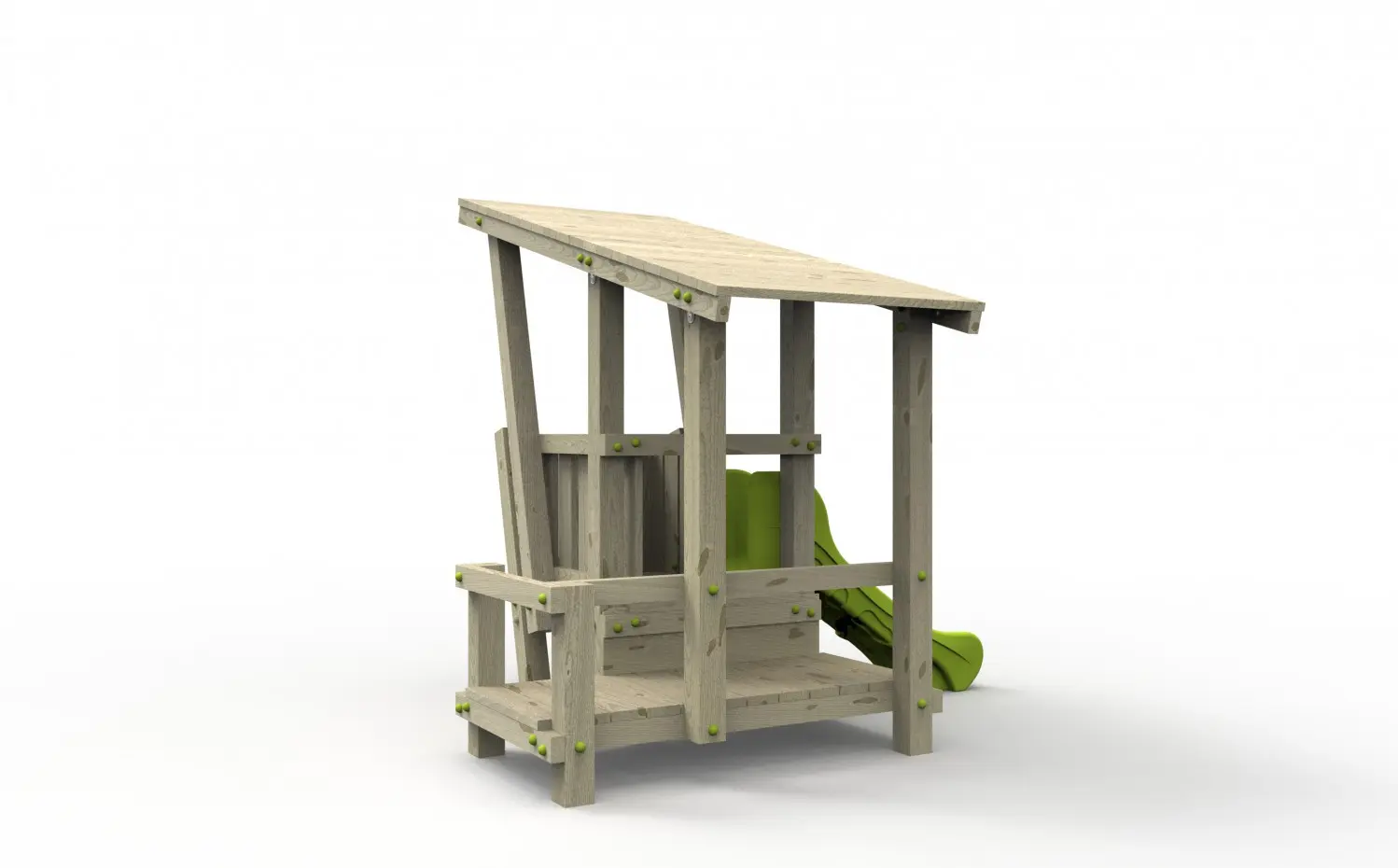 - Geïmpregneerd vurenhout, waar nodig in sterkteklasse C24, ideaal voor onderhoudsvrije speeltoestellen. Op maat gezaagd en afgeronde hoeken.