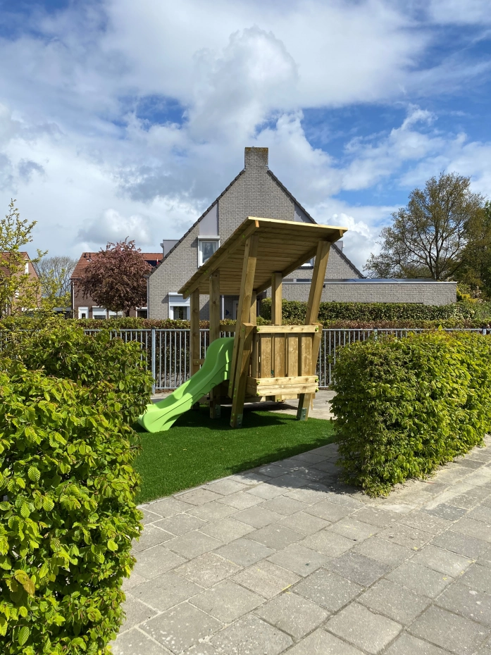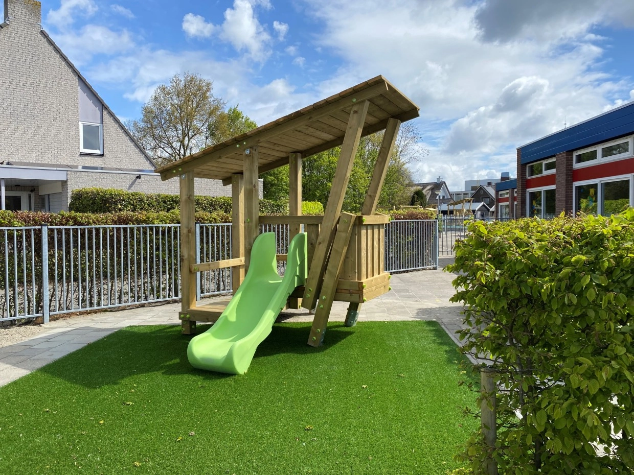 - Mooi zelfbouwpakket, eenvoudig te monteren zonder specialist of vakman. Geen speciale keuring achteraf vereist. Geschikt voor openbare speelplaats, camping, restaurant, school.