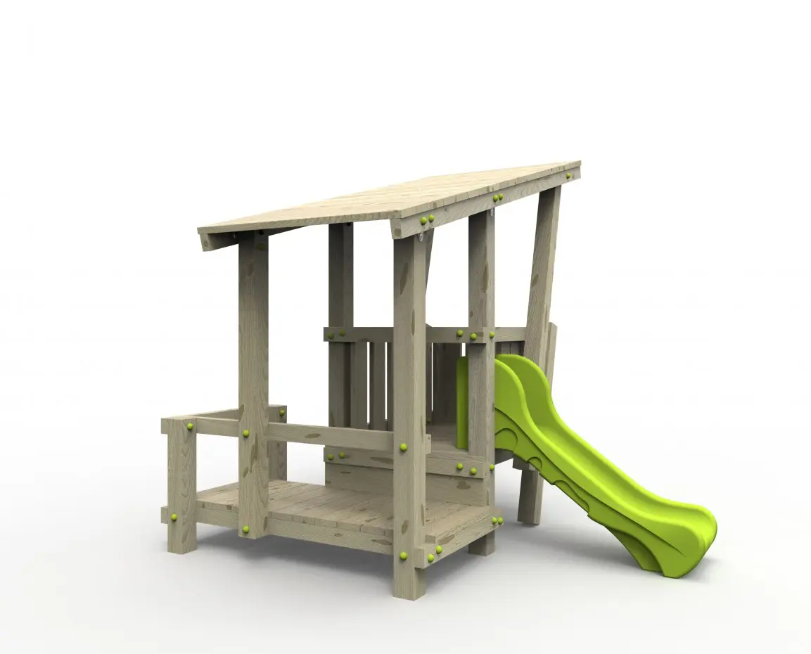 - Geïmpregneerd vurenhout, waar nodig in sterkteklasse C24, ideaal voor onderhoudsvrije speeltoestellen. Op maat gezaagd en afgeronde hoeken.